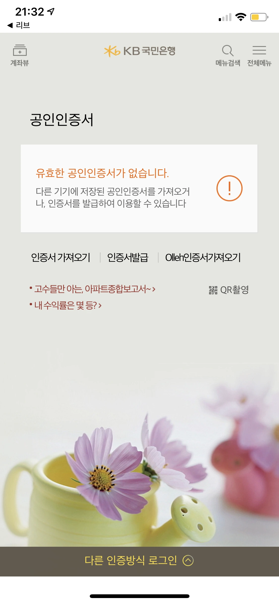 혹시나 리브(Liiv)는 가능할까하여 시도했지만 송금메뉴를 선택하면 KB메인 앱으로 돌려서 결국 공인인증서가 필요해진다.