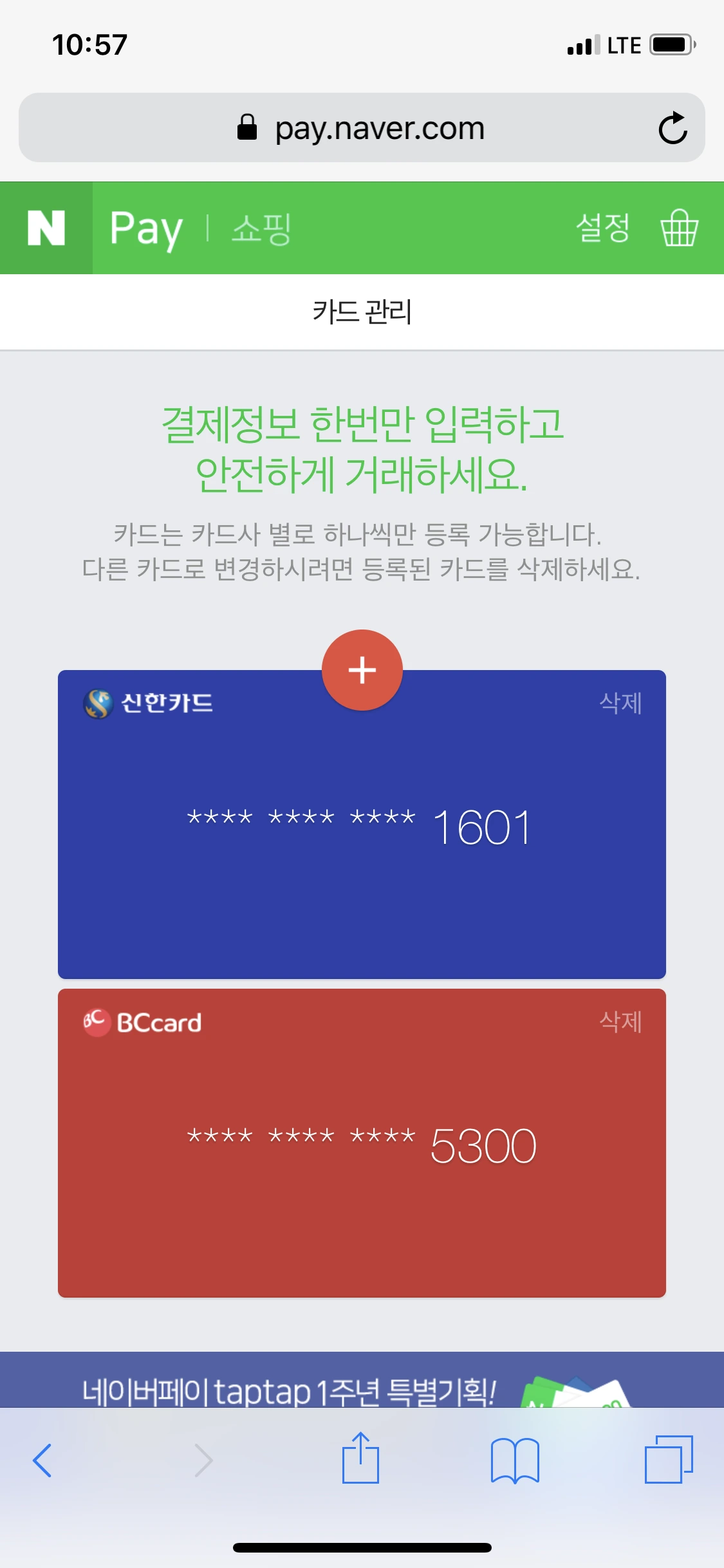 거기에 판 내에서도 등록할 수 있게 내제화 해 두었는데 난 이건 진짜 필요했던건지 잘 모르겠음. pay+ 라는 버튼도 모호하고 판을 통해 네이버페이에 등록하는 비율이 얼마나 될런지. 그리고 판에서 마스킹하는 숫자가 네이버에서 마스킹하는 숫자가 다르군?ㅋㅋ