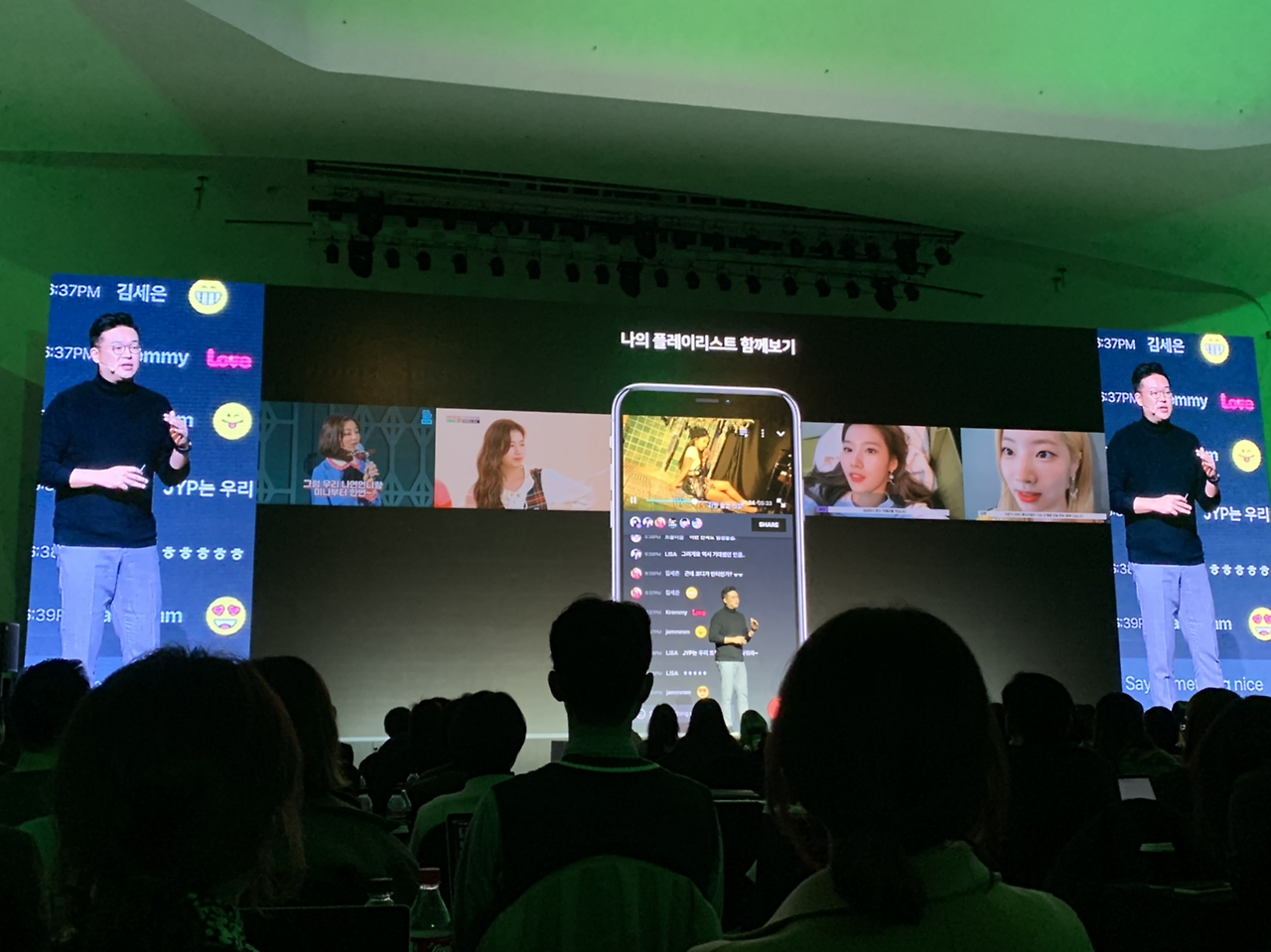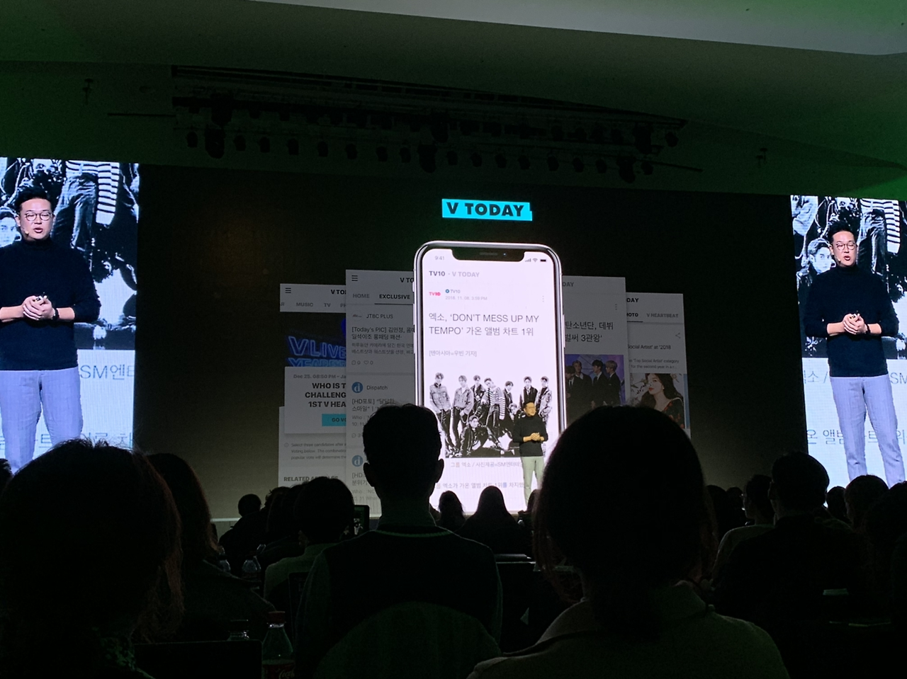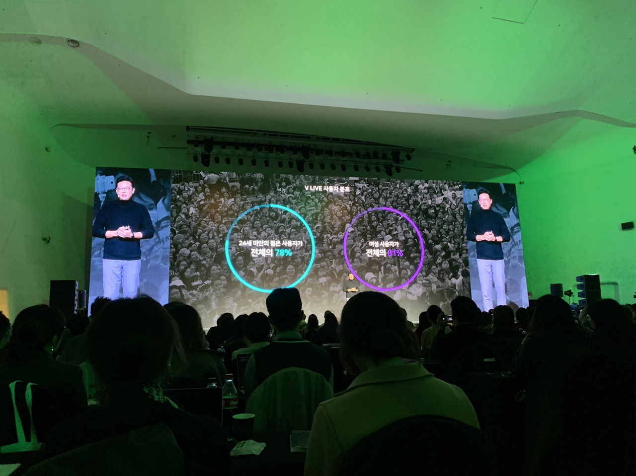 2015년 서비스 런칭 후 6천만 누적 다운로드를 달성했다는 v live! 해외 사용자 및 24세 미만 여성 사용자 비율이 압도적이라고 한다. 따라서 일반적 사용성과 다르더라도 사용자 조사를 통해 주요 타겟이 원하는 바를 적극 반영한다고. (아 이 무척 덕심을 자극하는 서비스가 아닐 수 없군) 예를들어 좋아요 버튼을 눌렀을 때 스타의 얼굴을 가리는 걸 싫어해서 화면 우측으로 옮긴다거나 화면은 항상 최대 크기로 한다거나(좋은건 크게크게)