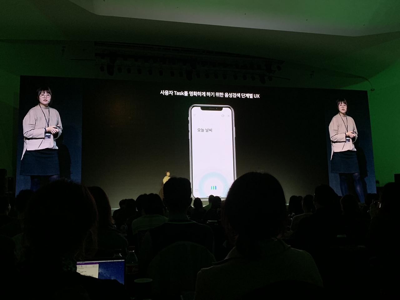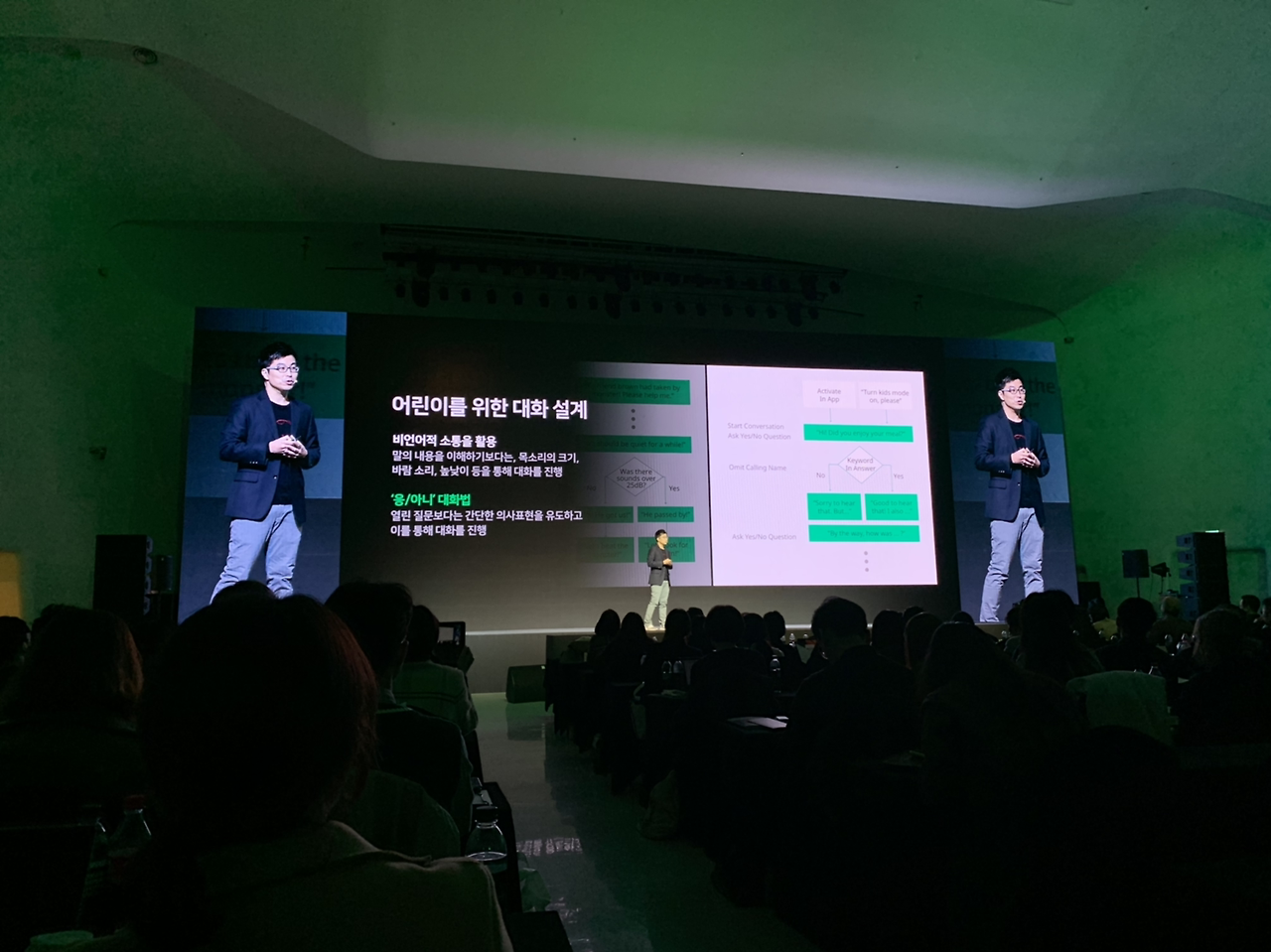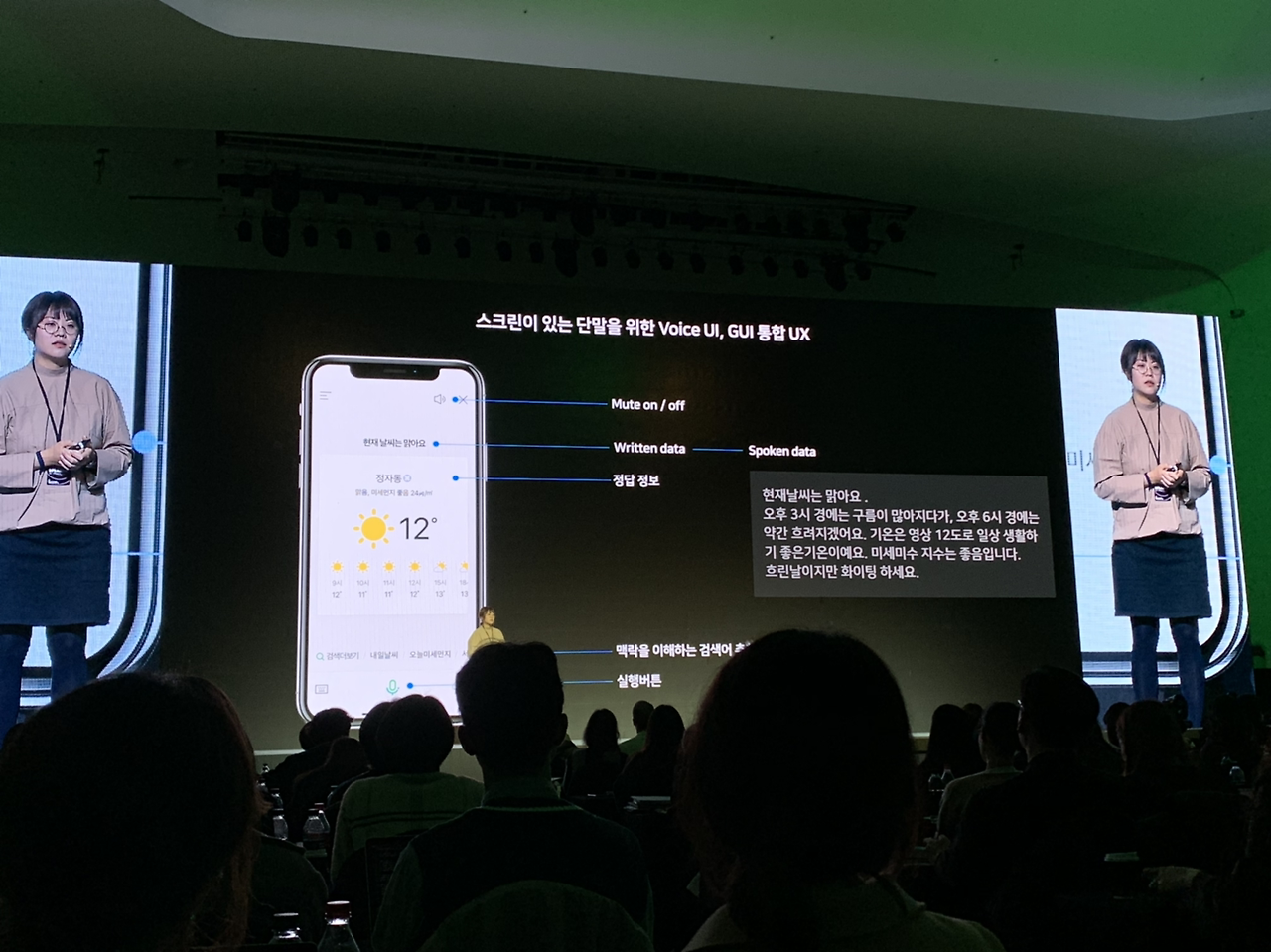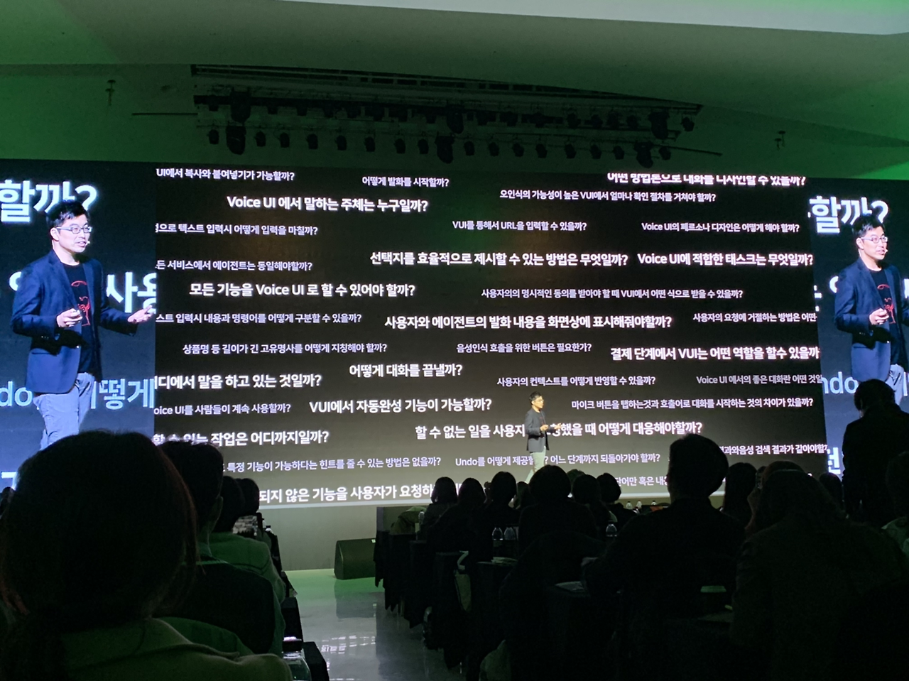 사실 가장 기대한 세션인데 인쇄책자에 있는 내용과 거의 그대로여서 조금 실망... 그래도 Voice UI에서 사용자에게 옵션을 제공할 때 GUI와는 다르게 1,2,3 옵션을 제공하기 보다는 기존 사용 내역이나 컨텍스트를 통해 최적의 안을 먼저 제안하는 것이라든지, 사용자는 Voice agent를 생물(?)로 인지하기 때문에 페르소나를 잡는게 중요하다든지 하는 중요한 몇가지 포인트를 짚어주었다. 몇개월 후 산학이 마무리되면 더 의미있는 공유가 가능할 것으로 기대.
