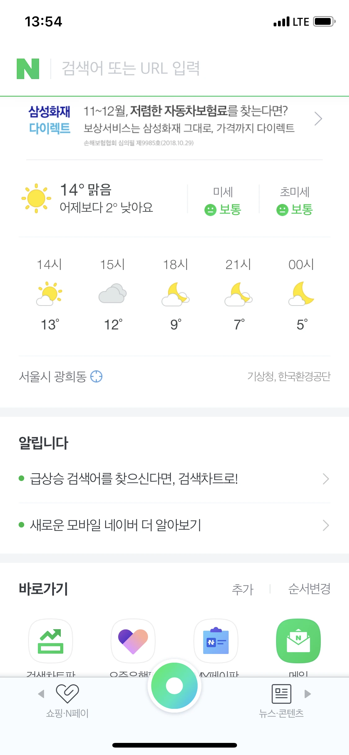 새로운 네이버앱 메인의 그린닷은 평균 여성 엄지손가락 반경을 기준으로 배치, 한손으로 조작하기 가장 쉽도록 만들었다. (이것은 사실 평균을 벗어나는 사용자의 경우 단점으로 작용할 것 같은데 한국은 메이저 기준으로 통일을 선호하니까...)