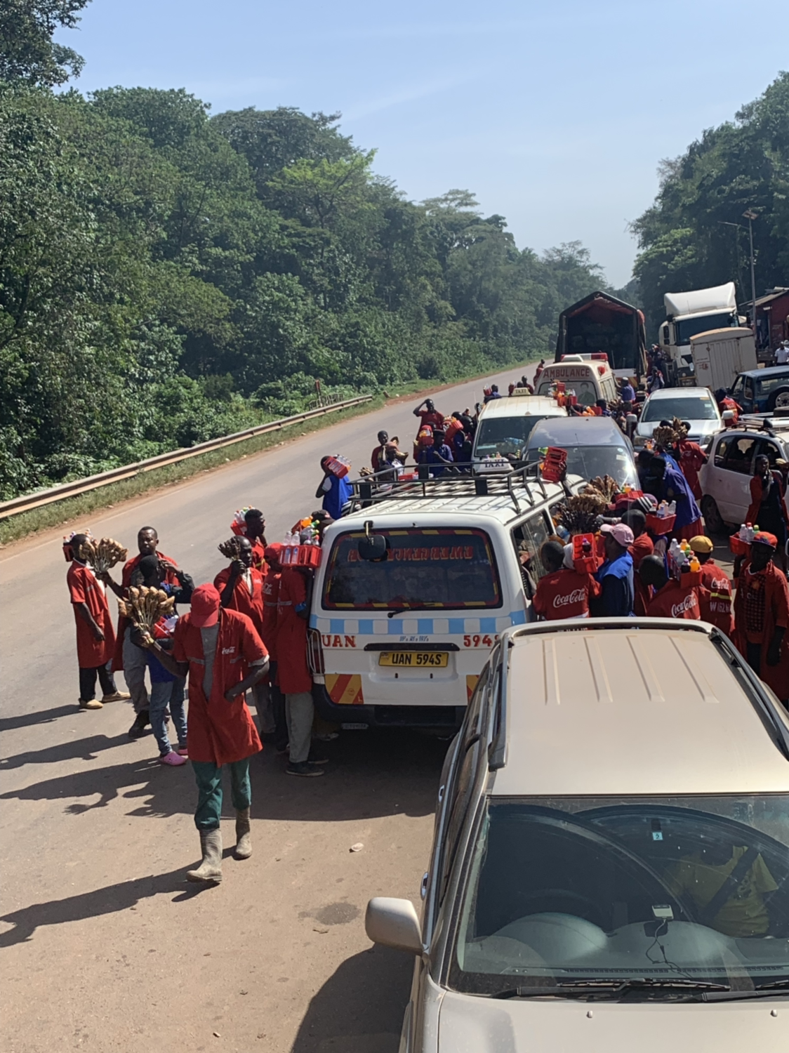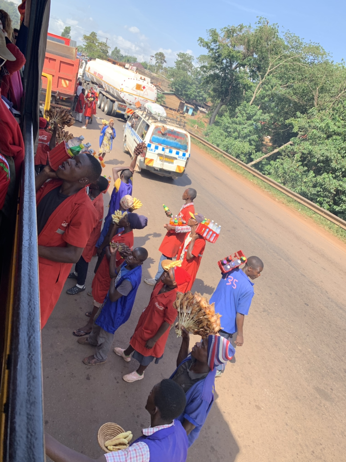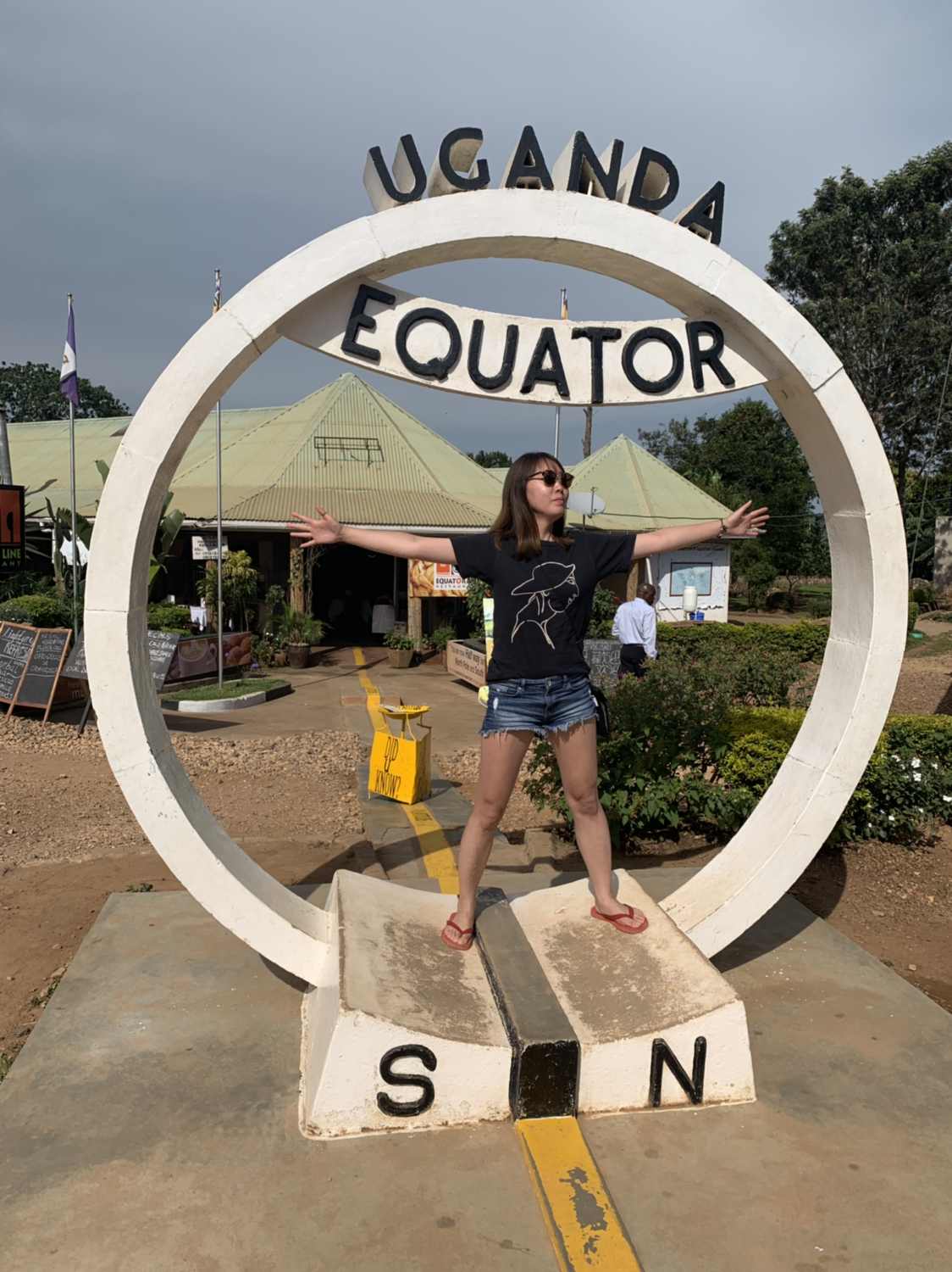진자에서 떠나는 날 아침에 적도선을 지나게 되어 잠시 멈춰 단체사진도 찍고 기념품 가게도 둘러보았다. 남반구로의 첫 여행지가 우간다가 될 줄이야...