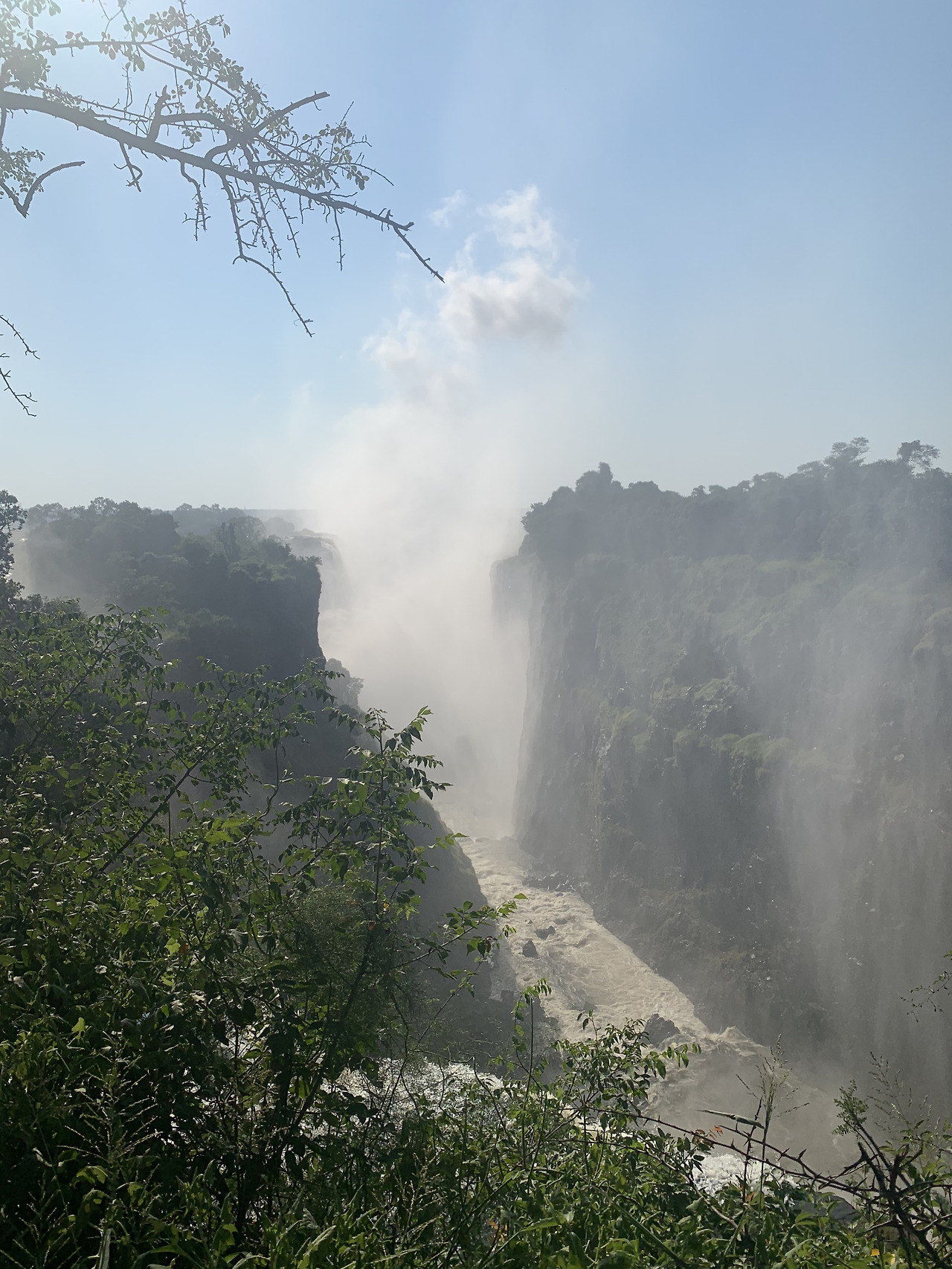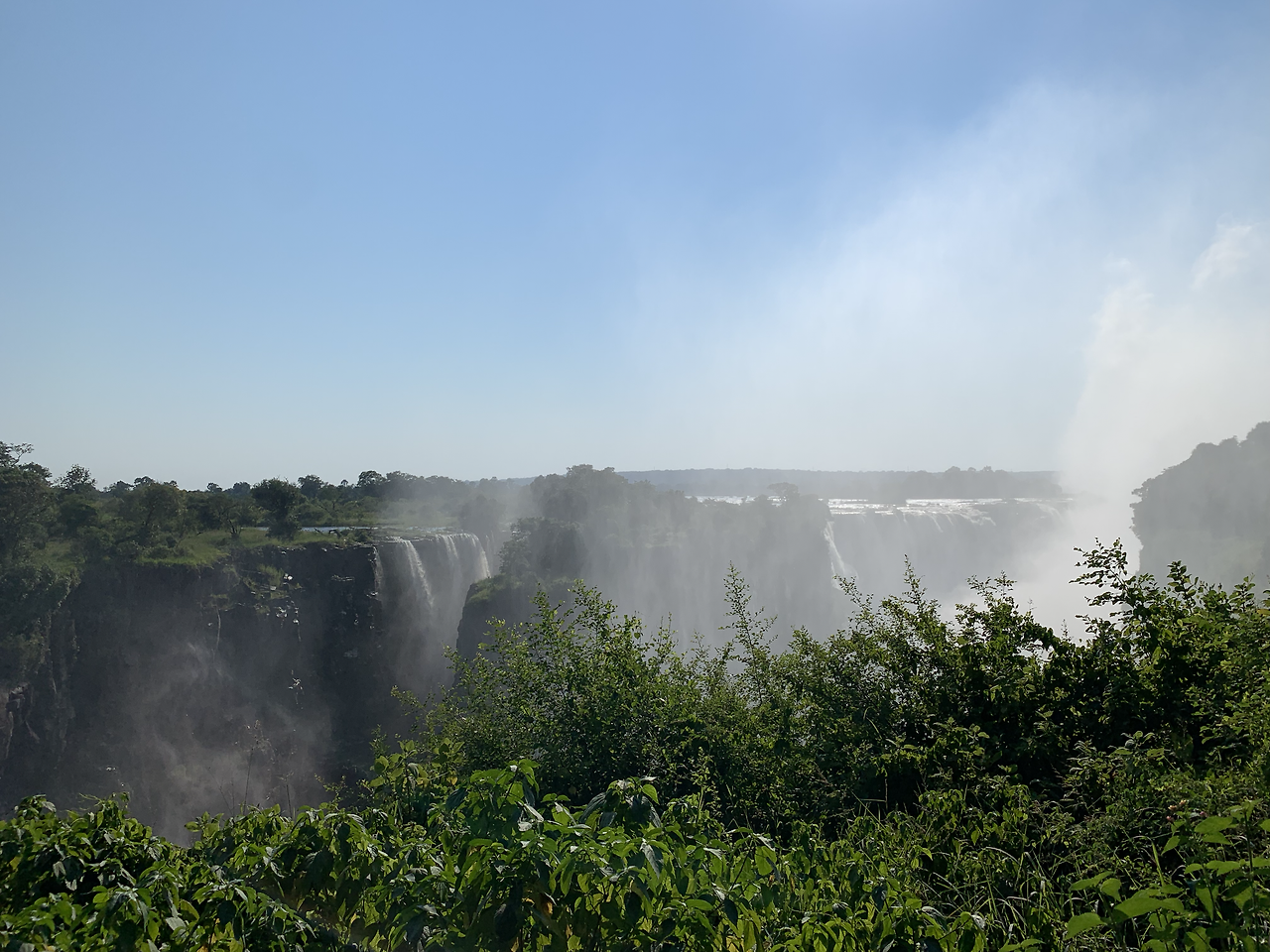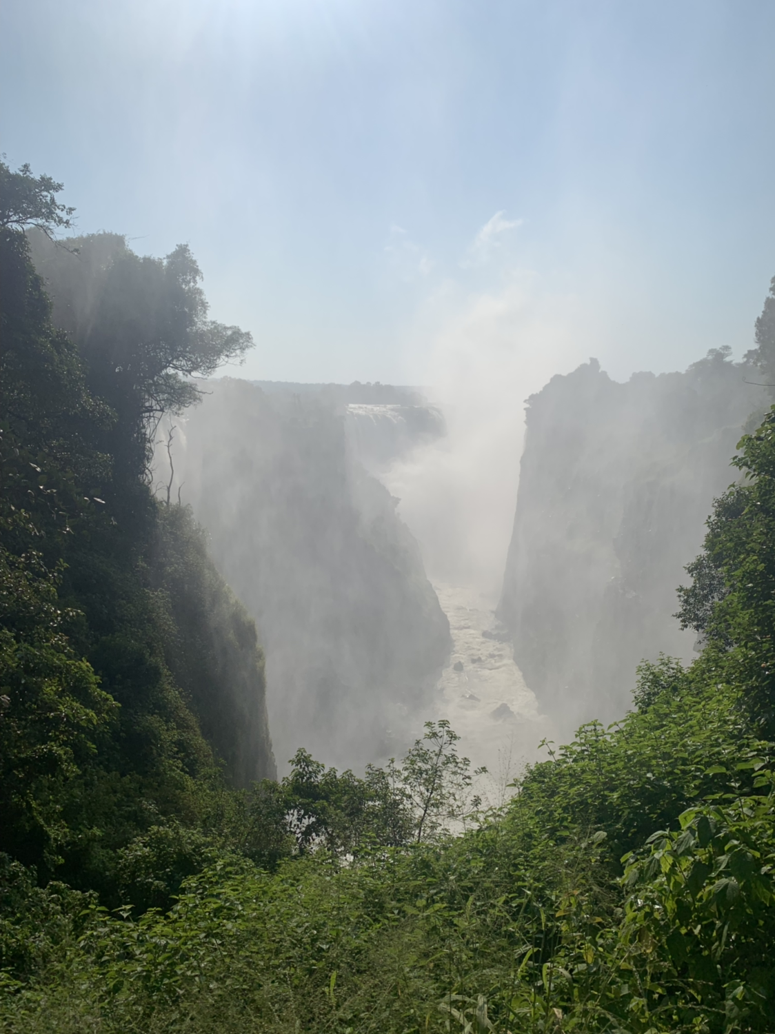 빅토리아 폭포에 왔으니 폭포를 봐야지. 국경에 위치하여 양국에서 볼 수 있는 느낌이 다르기 때문에 반드시 양쪽에서 다 봐줘야 한다. 짐바브웨에서는 폭포의 여러 뷰포인트를 잘 가꾸어진 트레일을 따라 걸으며 조망할 수 있고 잠비아에서는 좀더 가까이 볼 수 있기 때문이다. 하지만 둘 중에 하나만 가야 한다면 아무래도 짐바브웨가 더 낫다. 잠비아는 너무 가까워서 미스트가 거의 비처럼 쏟아지기 때문에 눈을 뜨기도 어렵다. 이 폭포 덕분에 주변과는 다른 열대 우림이 폭포 주변에만 형성된 것도 신기했다.