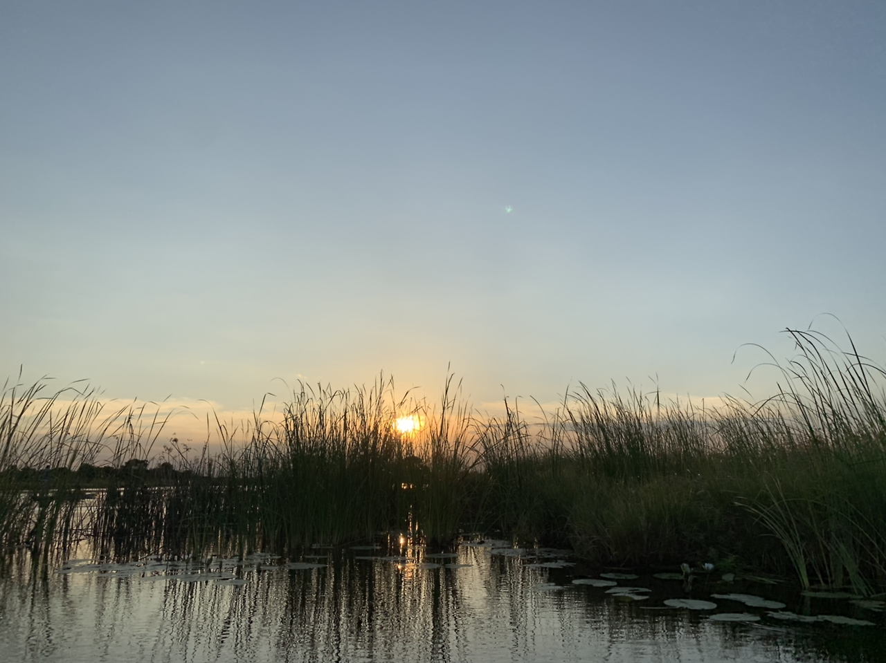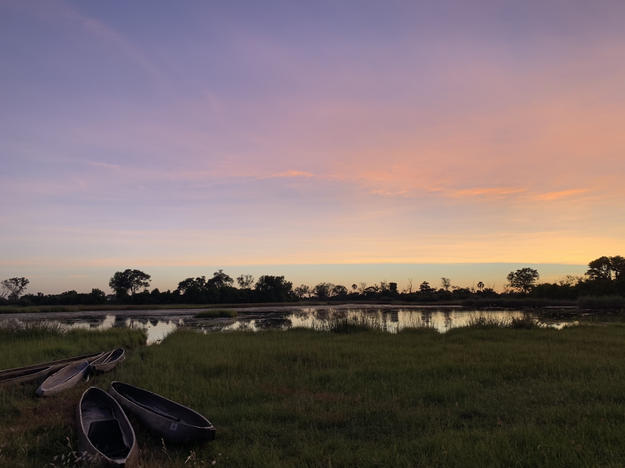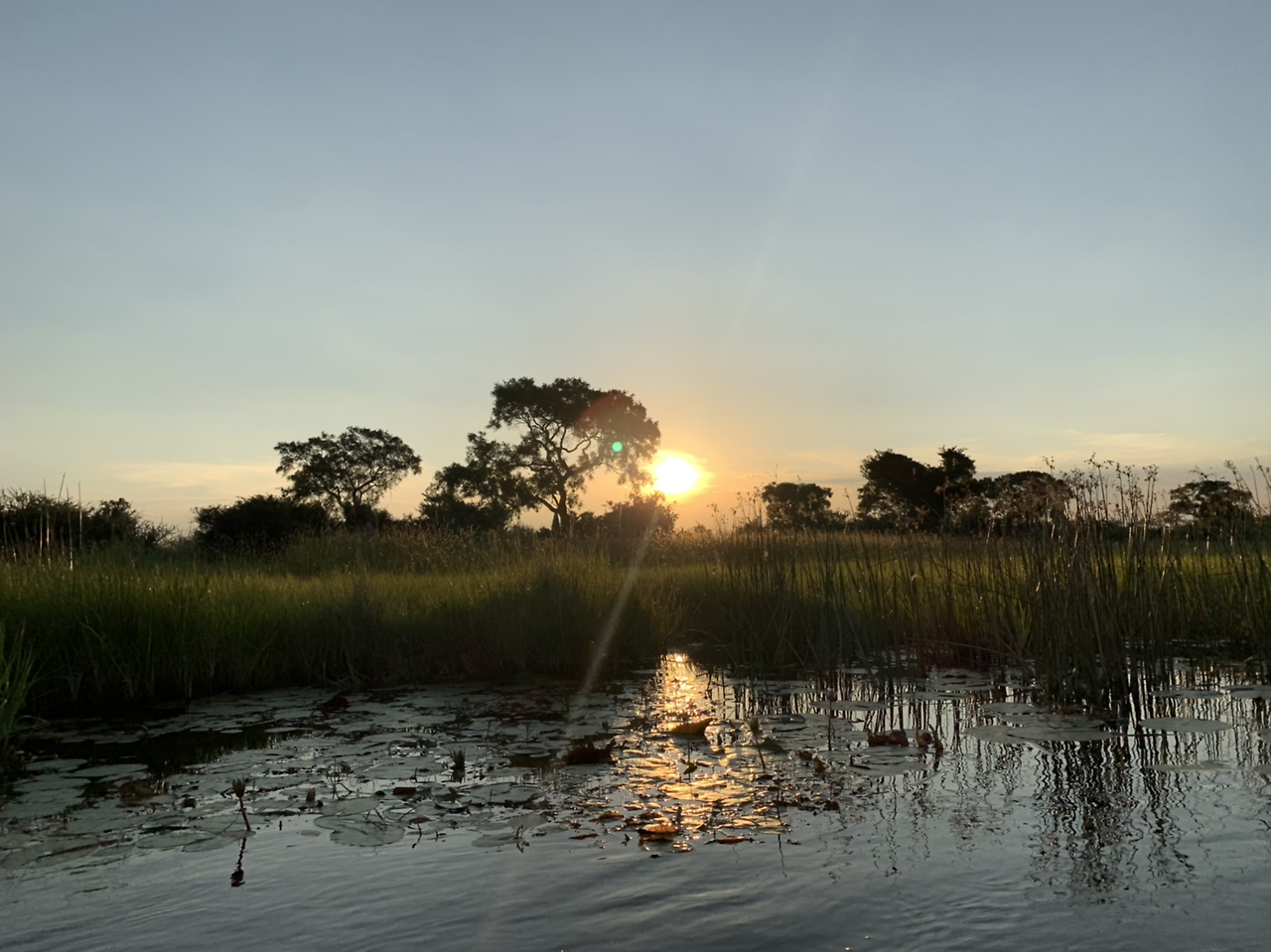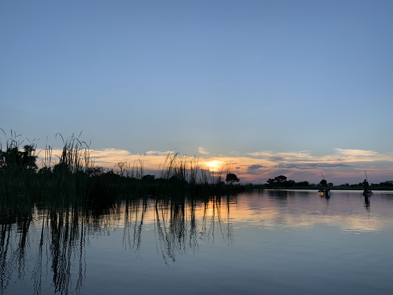 옥타방고 델타는 우기에 내린 빗물이 고여 생성된 습지인데 대부분이 건조한 모래지형이라 바닥의 지하수로 빠지는 다른 지역과는 달리 하마들이 단단하게 다져놓은 길 덕분에 이렇게 물이 땅으로 스며들지 않고 습지를 유지한다고 한다. 물론 지구 온난화의 영향으로 습지는 계속 줄어들고 변하고 있어 주민들의 걱정이 심각했다. 이곳 원주민들은 부시맨의 후손으로 모코로라는 배를 이용해 이동하는데 이 배를 이용해 관광객들과 에코캠프를 하면서 생계를 유지한다고 한다. (그래서 팁 욕심이 좀 과했음)