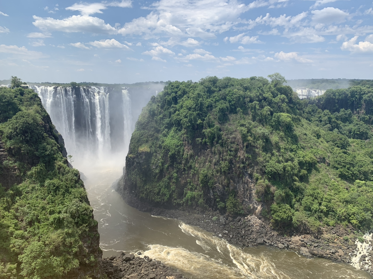 아쉬운 마다가스카르를 뒤로 하고 원래의 투어 그룹과 합류하기 위해 다음 목적지인 빅토리아 폭포로 향했다. 빅토리아 폭포는 잠비아와 짐바브웨 경계에 위치하고 있는데 워낙 유명한 관광지이다 보니 공항에 한국인들도 심심찮게 보였다. 최대 낙차 108m로 세계에서 제일 길어서 작년에 다녀온 나이아가라 폭포를 현지 가이드는 베이비라고 부를 정도이다.