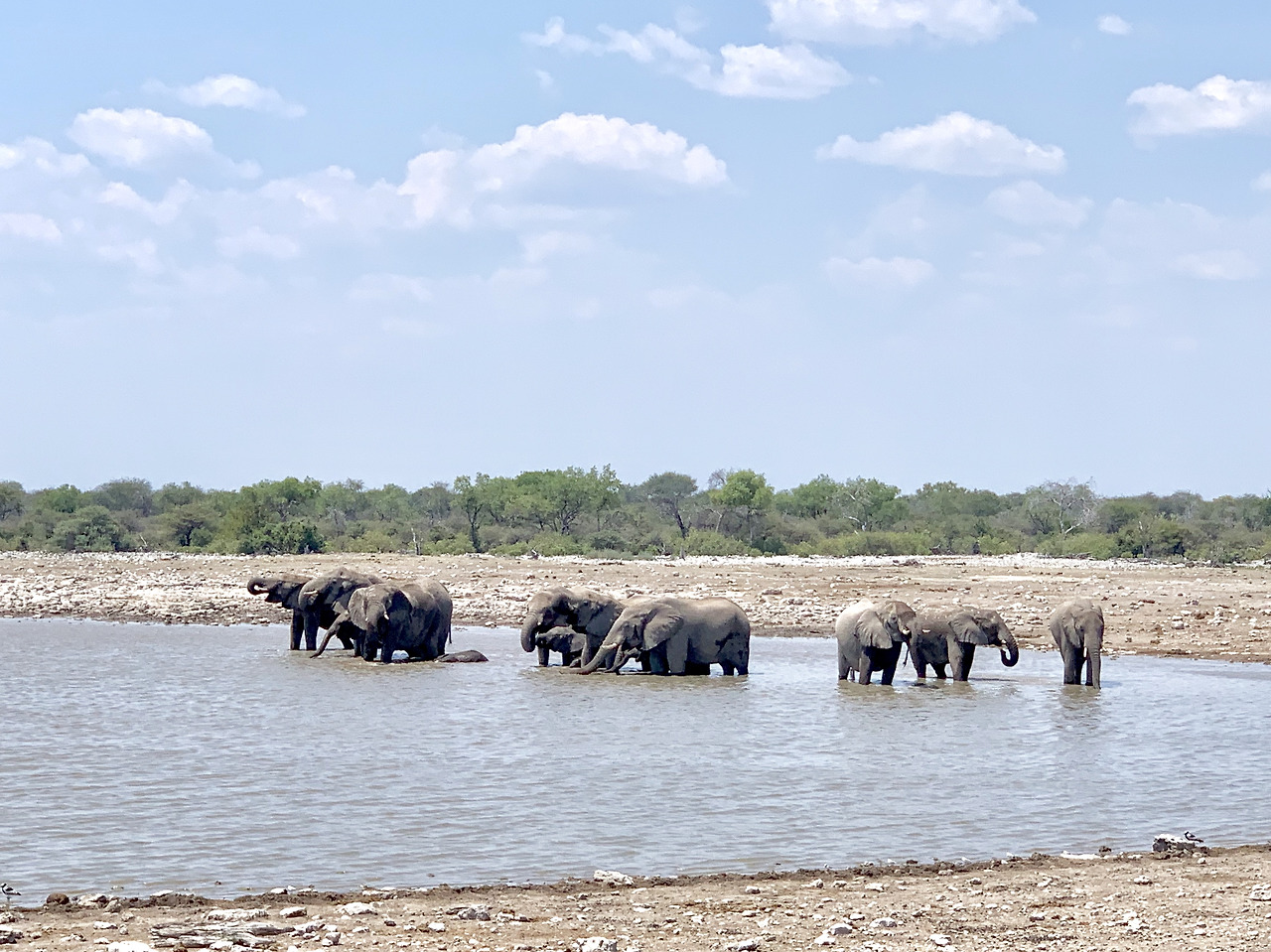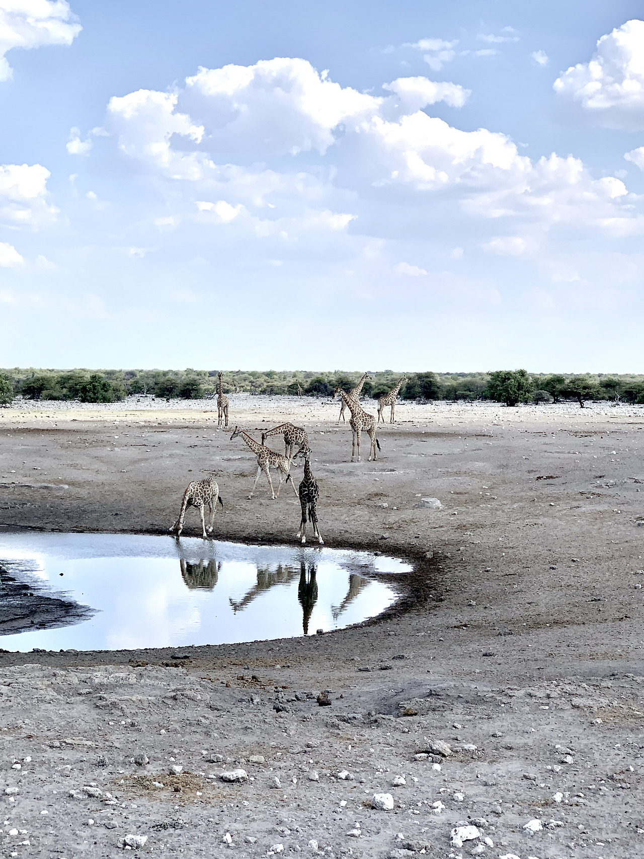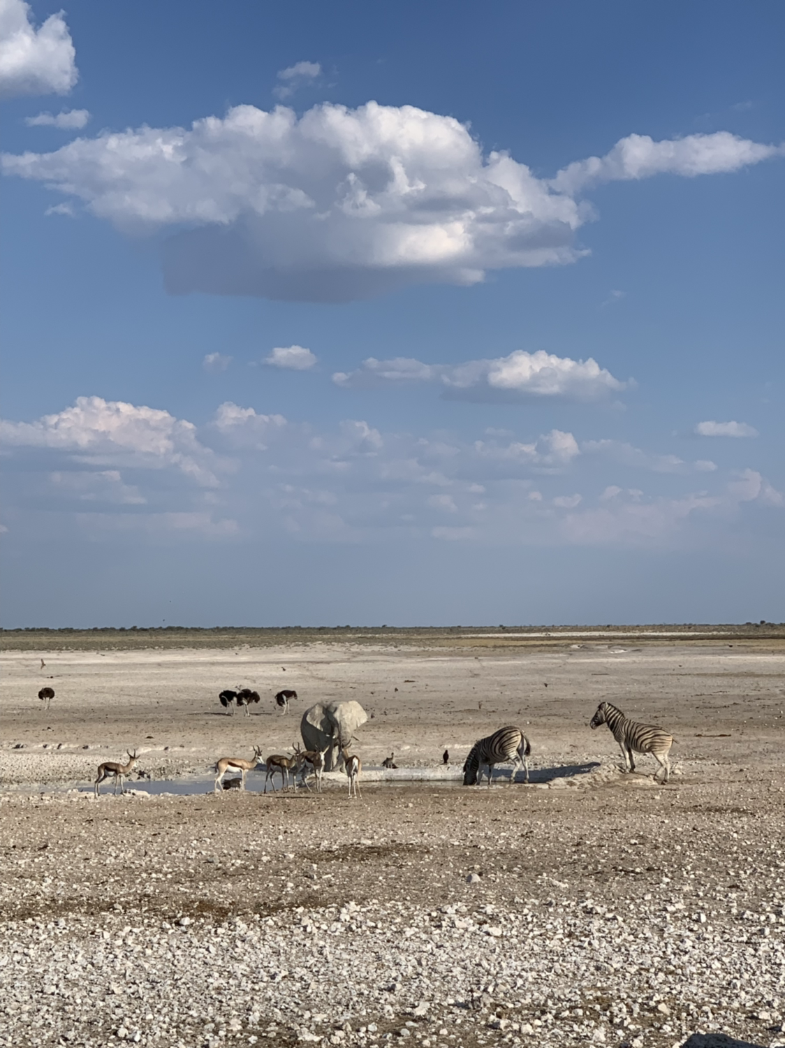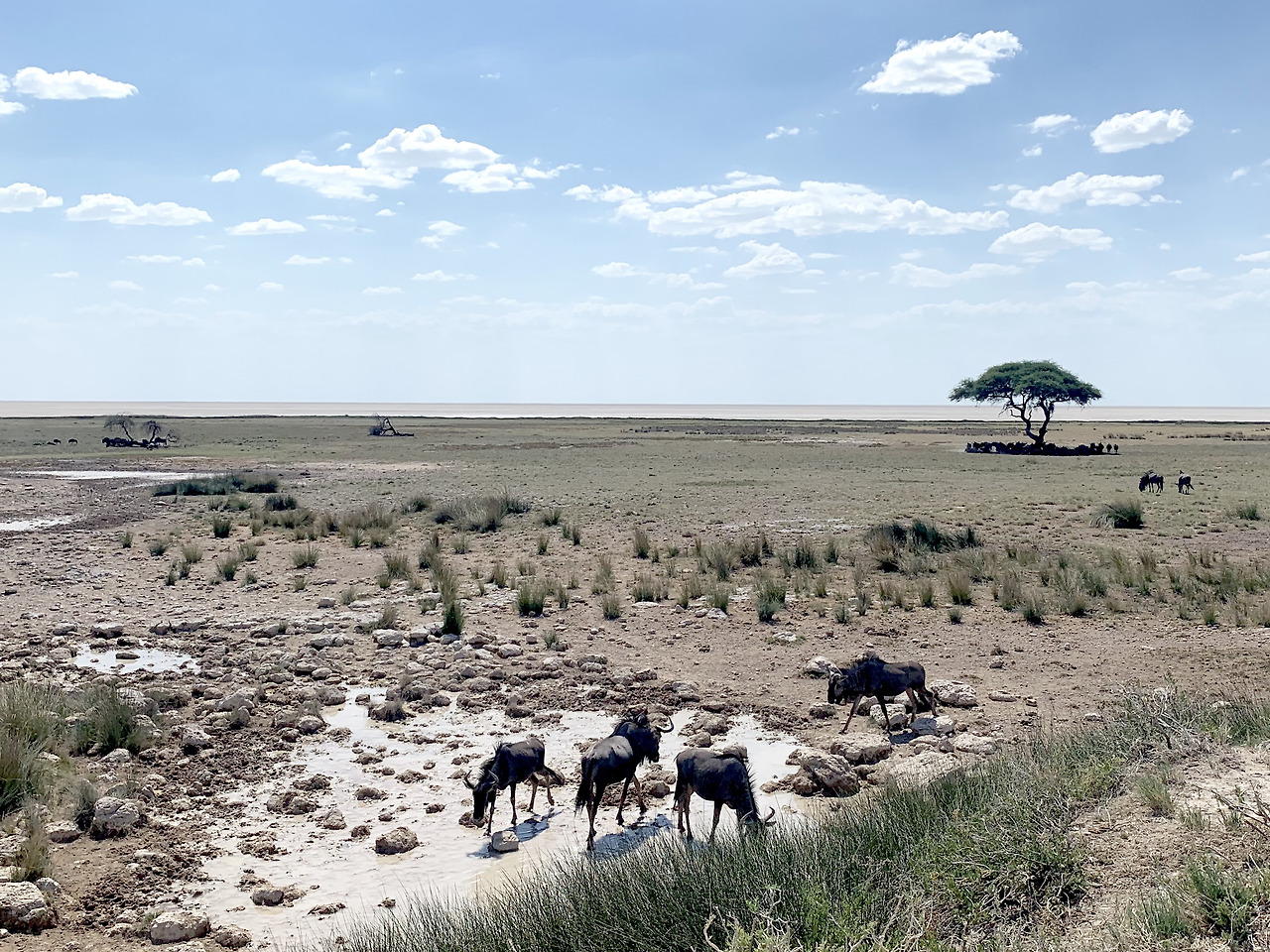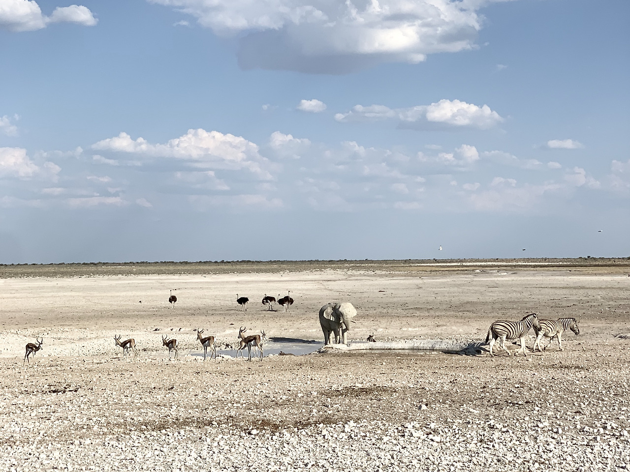 첫번째 주요 방문지는 에토샤 국립공원이다. 건조한 날씨와 모래질 토양때문에 물을 구하기 어려운 동물들을 위해 여기 저기 인공 물웅덩이를 설치해놓아서 세렝게티에 비해 상대적으로 동물들을 찾기가 쉬웠다. 물웅덩이에 모여든 육식동물과 초식동물이 서로를 경계하면서도 공격하지 않고 물을 공유하는 모습도 신기했다.