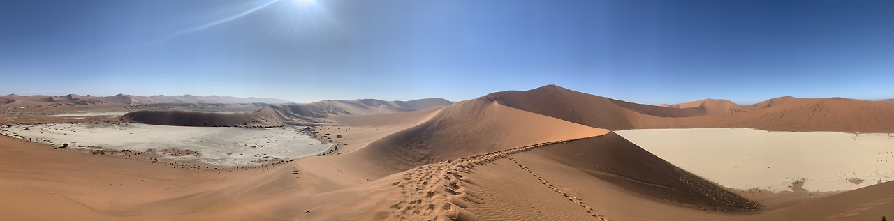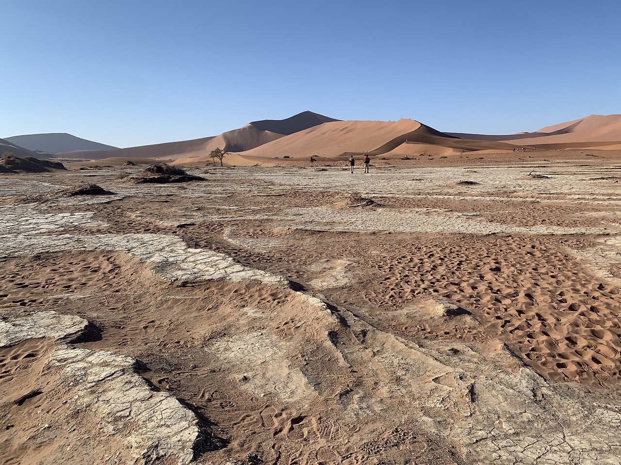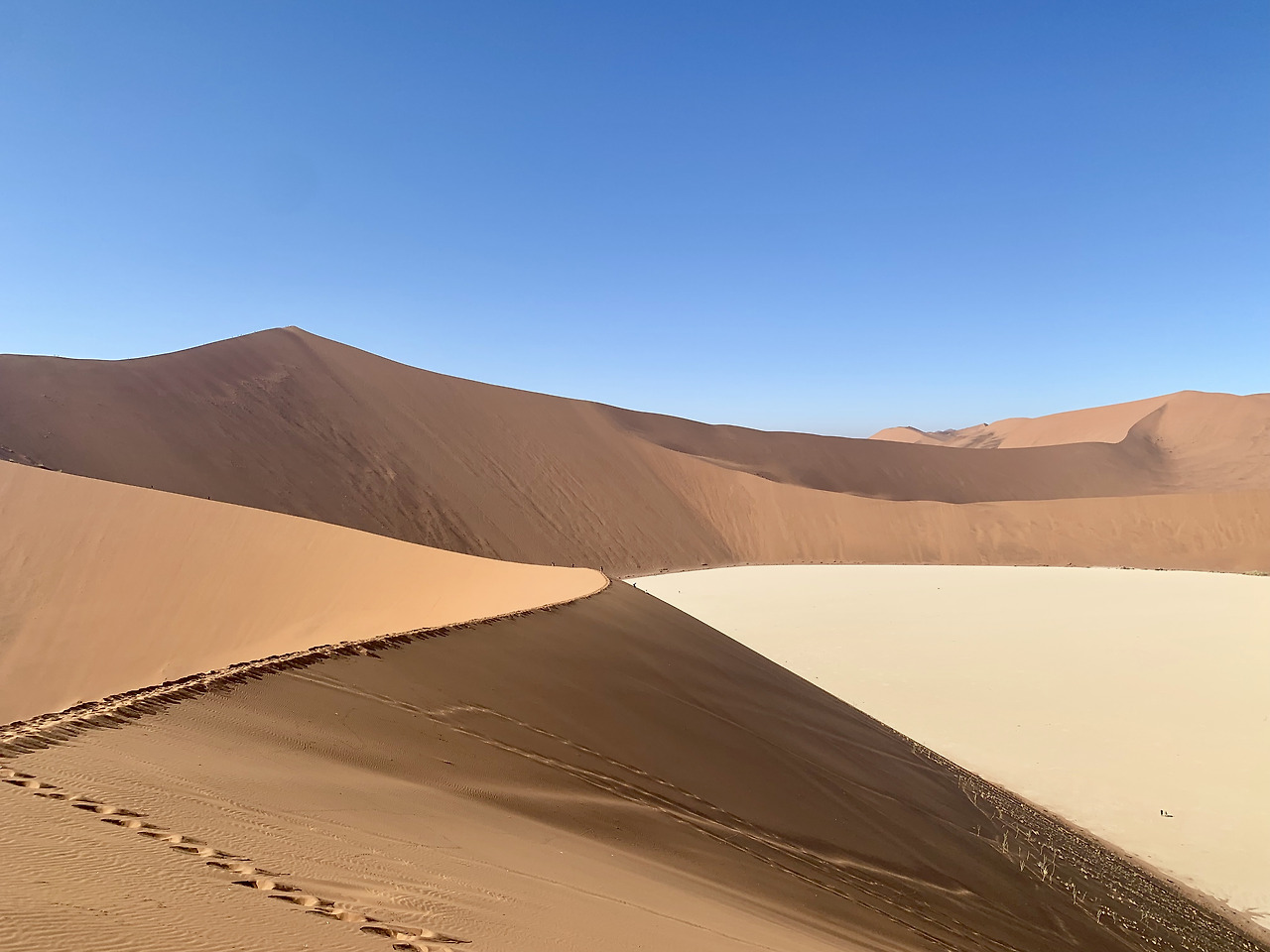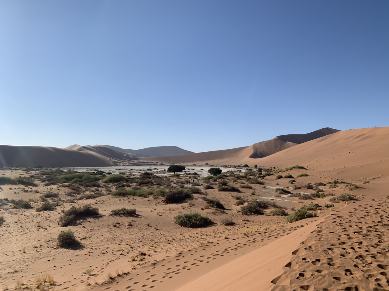 다음은 Deadvlei 높이가 300m라서 Dune45에 오르길 포기했던 나는 잠시 쫄았으나 가파르기가 Dune45보다는 낫다는 말에 용기내어 오르기로 했다. 정상에서 보는 풍경이 절경이라길래 정상까지 올랐는데 사실 가는 길에 본 풍경이 더 아름다웠고 경사로로 내려오는 게 훨씬 재미있었다. 모래에 푹푹 발이 빠지며 순식간에 달려 내려오는 재미는 해본 사람만 알 수 있지 ㅎㅎ