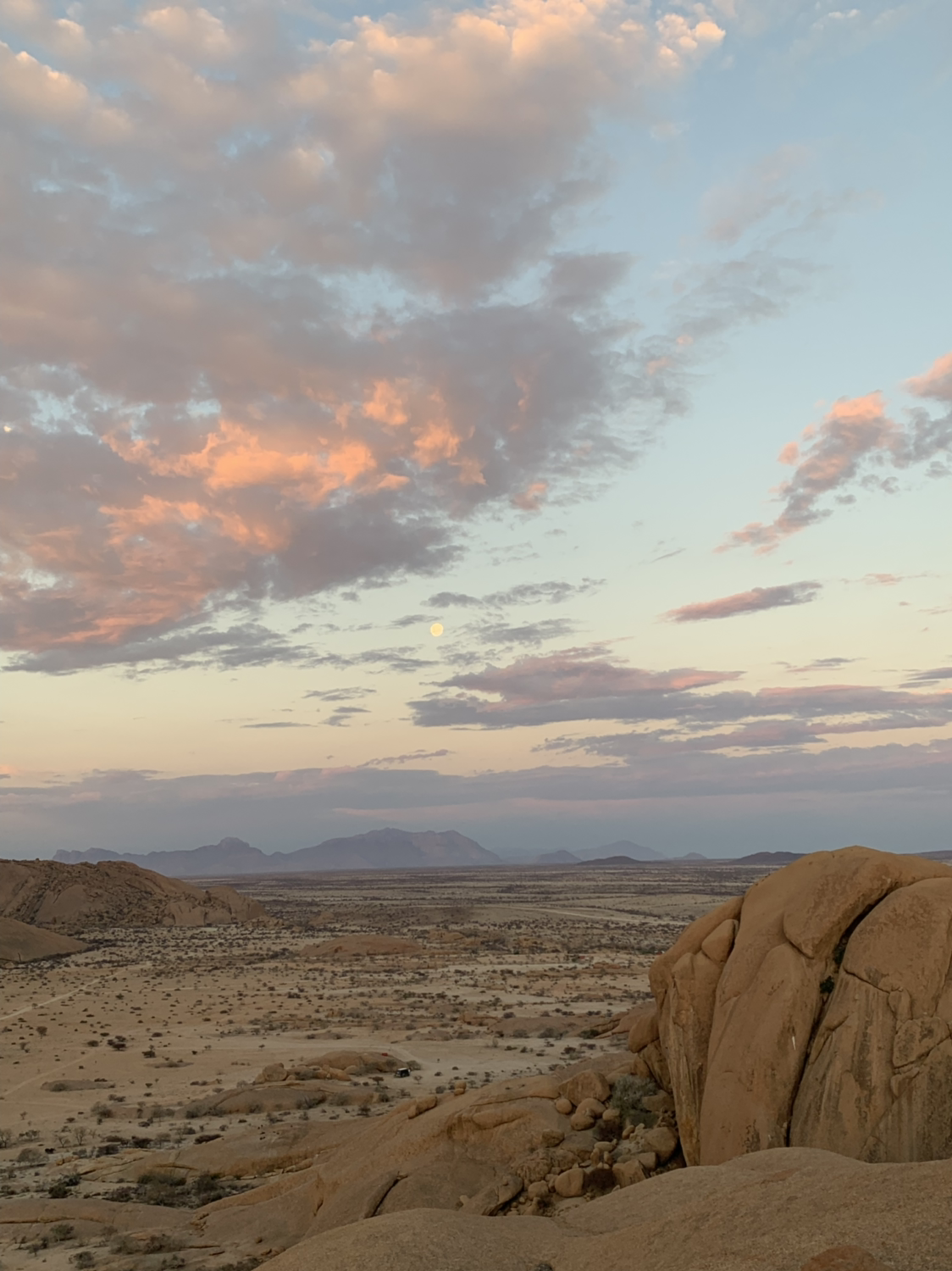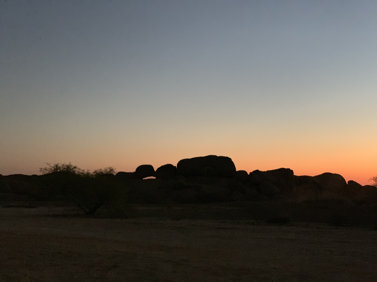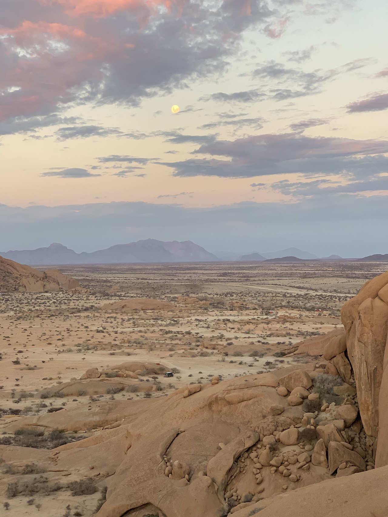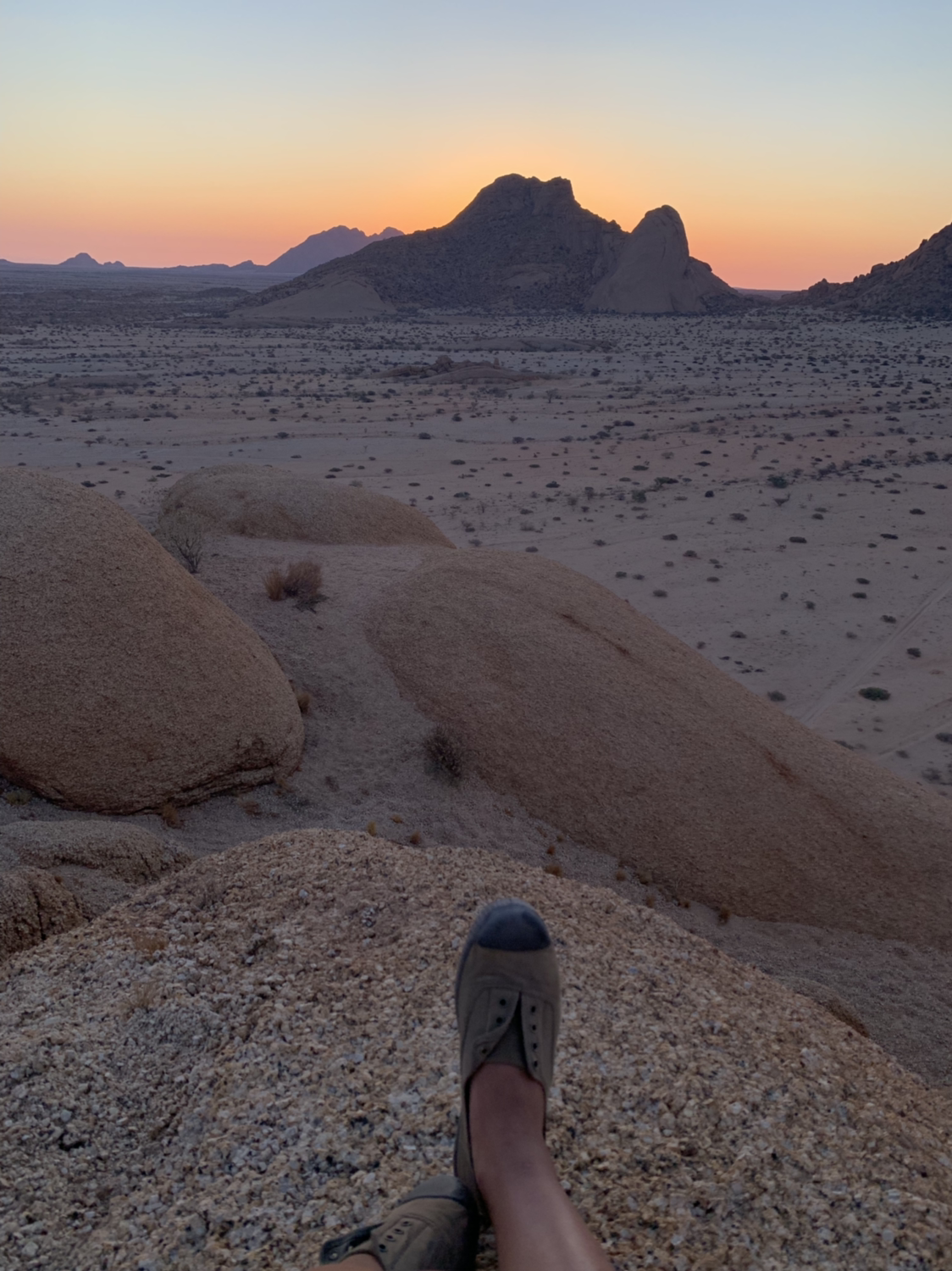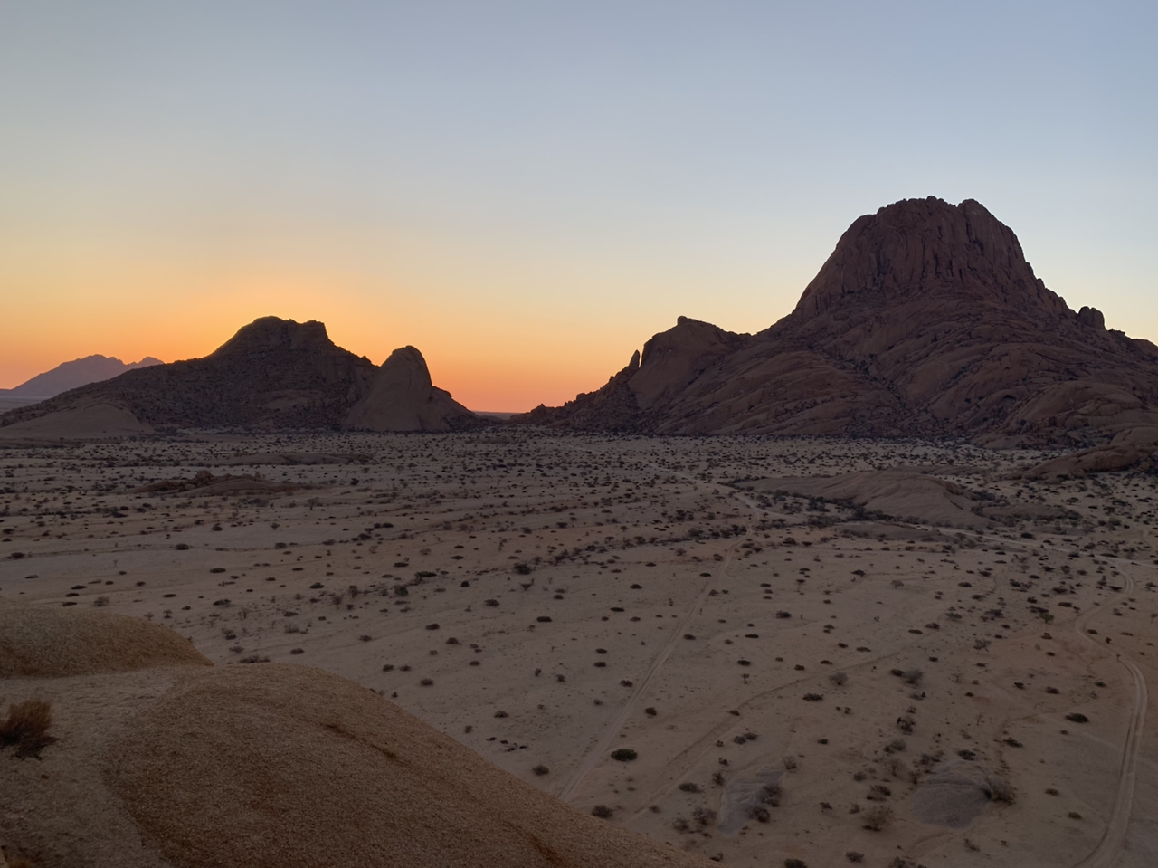 다음 캠프지는 돌로 된 산과 거기서 보는 일몰이 아름다운 스피츠코프 사막이다. 이 곳에서 내가 사막을 얼마나 좋아하는지 처음 깨닫게 되었달까. 건조함이 주는 상쾌함이 샤워를 못하고 물수건으로 몸을 닦아야 했음에도 불구하고 다음번에 꼭 다시오고 싶다는 생각이 들게 한다. 스타워즈에 나오는 외계 행성같이 보이는 저 돌산 위에 매트리스와 침낭을 들고 올라가 밤에 잠을 잤는데 매우 밝은 달빛 덕에 하나도 무섭지 않고 어릴 때 아버지랑 같이 동네 북한산 꼭대기에서 잠들고는 했던 기억이 떠오르기도 했다.