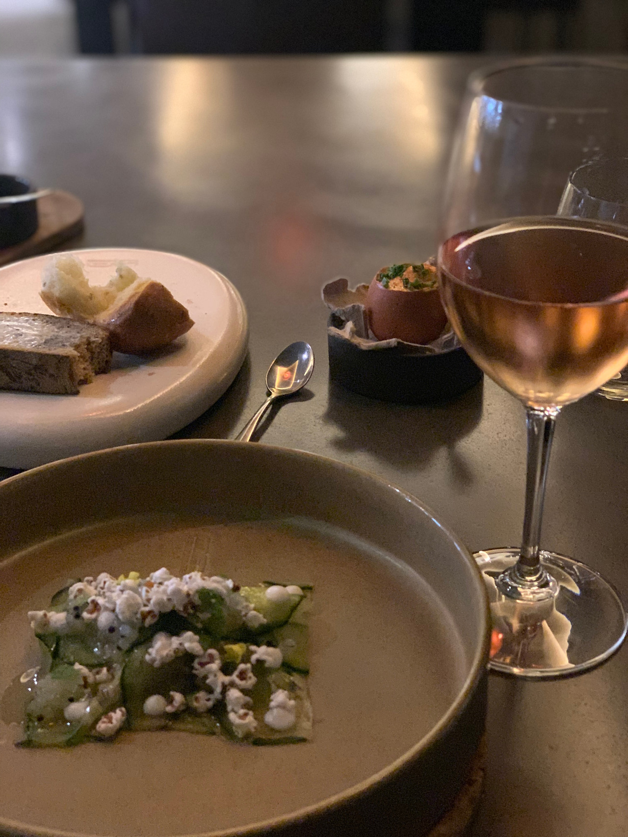 Raw Lambertsbaai bream, cucumber, sea lettuce, avocado, mint, sesame dressing - HV Treasure 2018