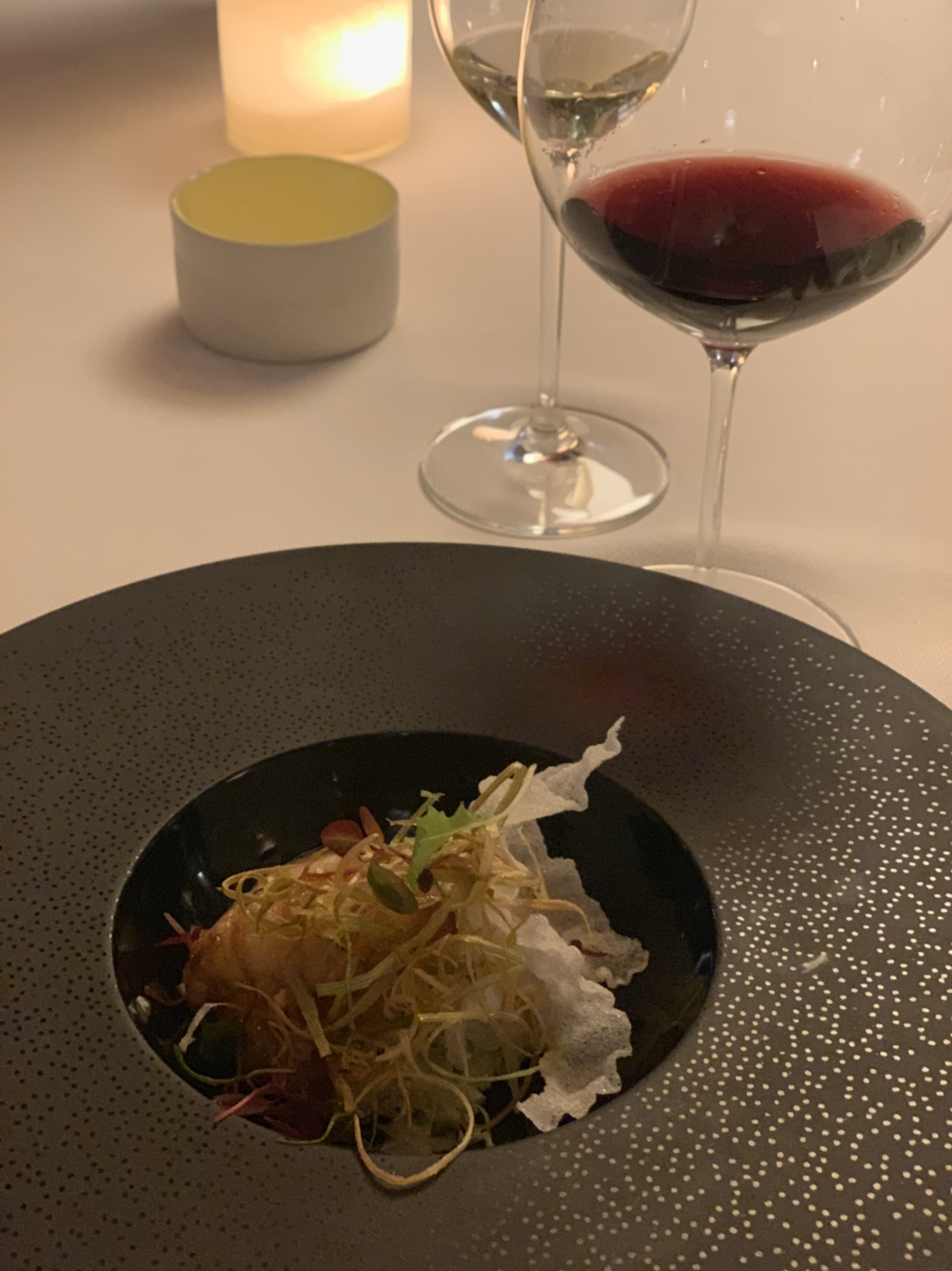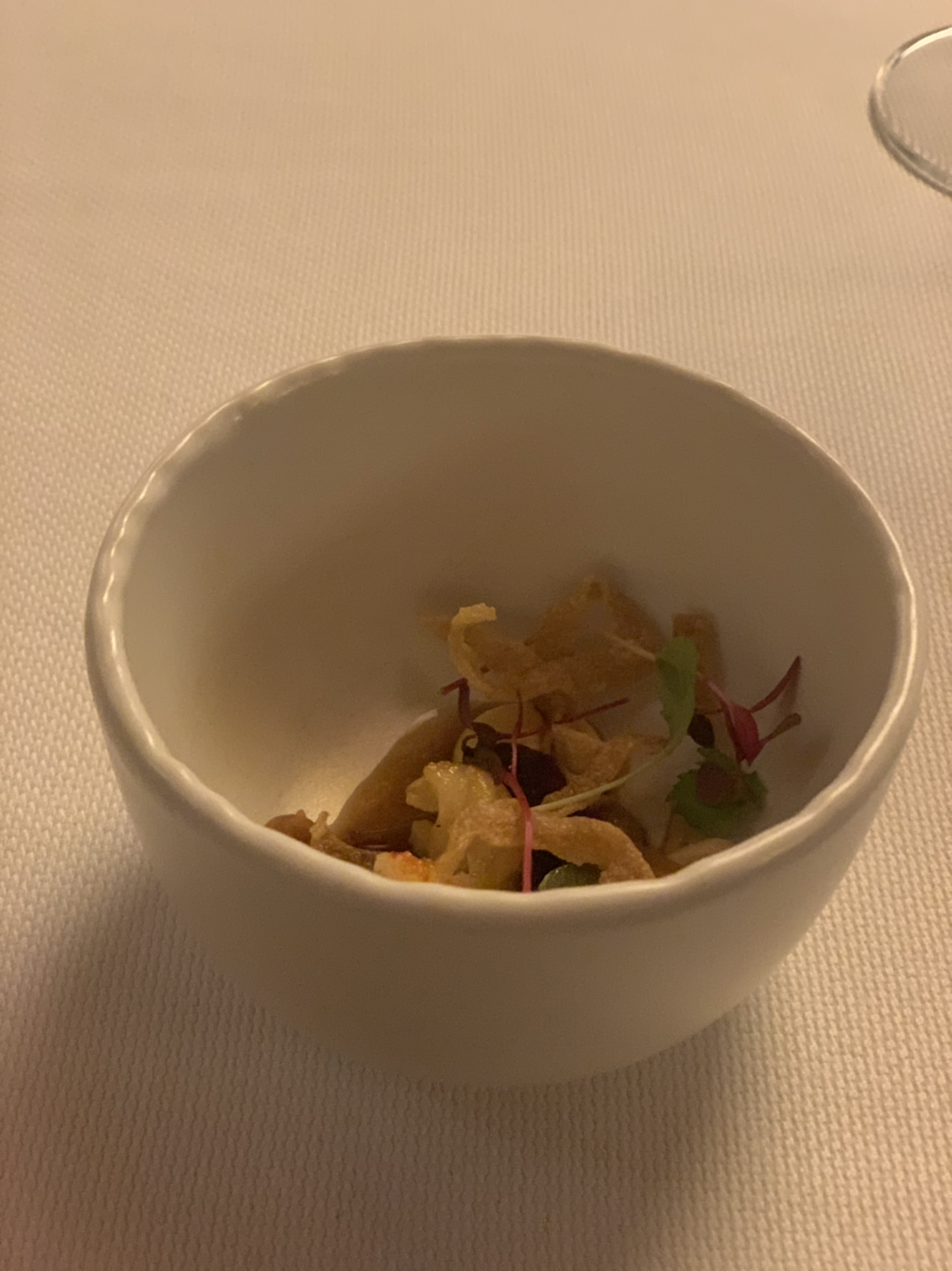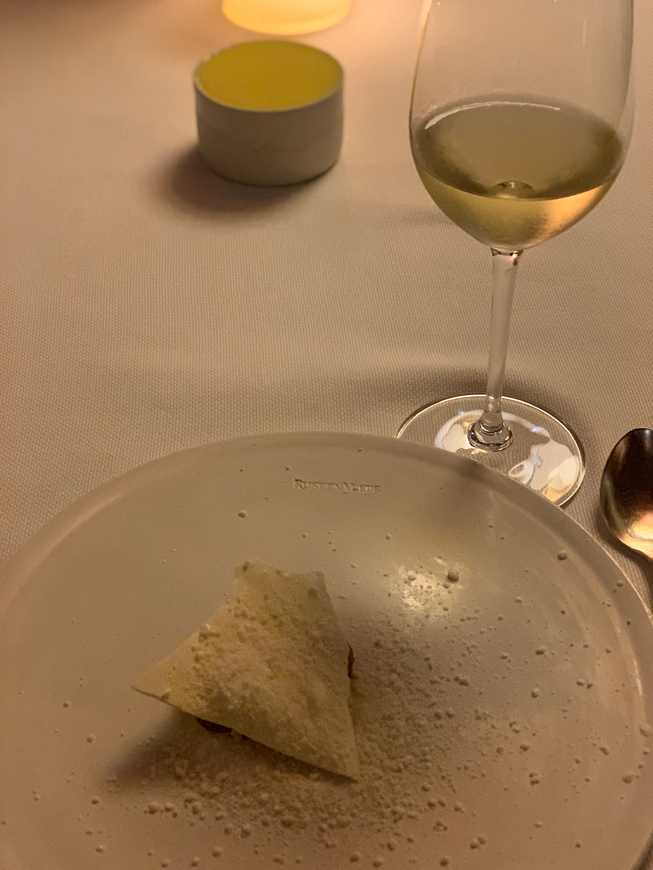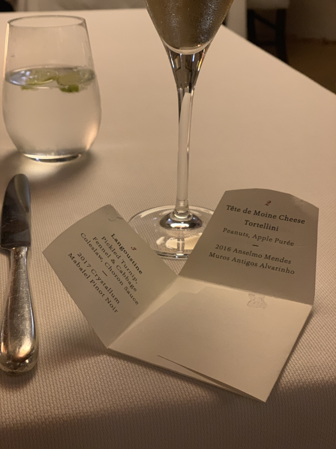 Tête de Moine cheese tortellini peanut and Apple purée ~ 2016 Anselmo Mendes muros Antigos Alvarinho