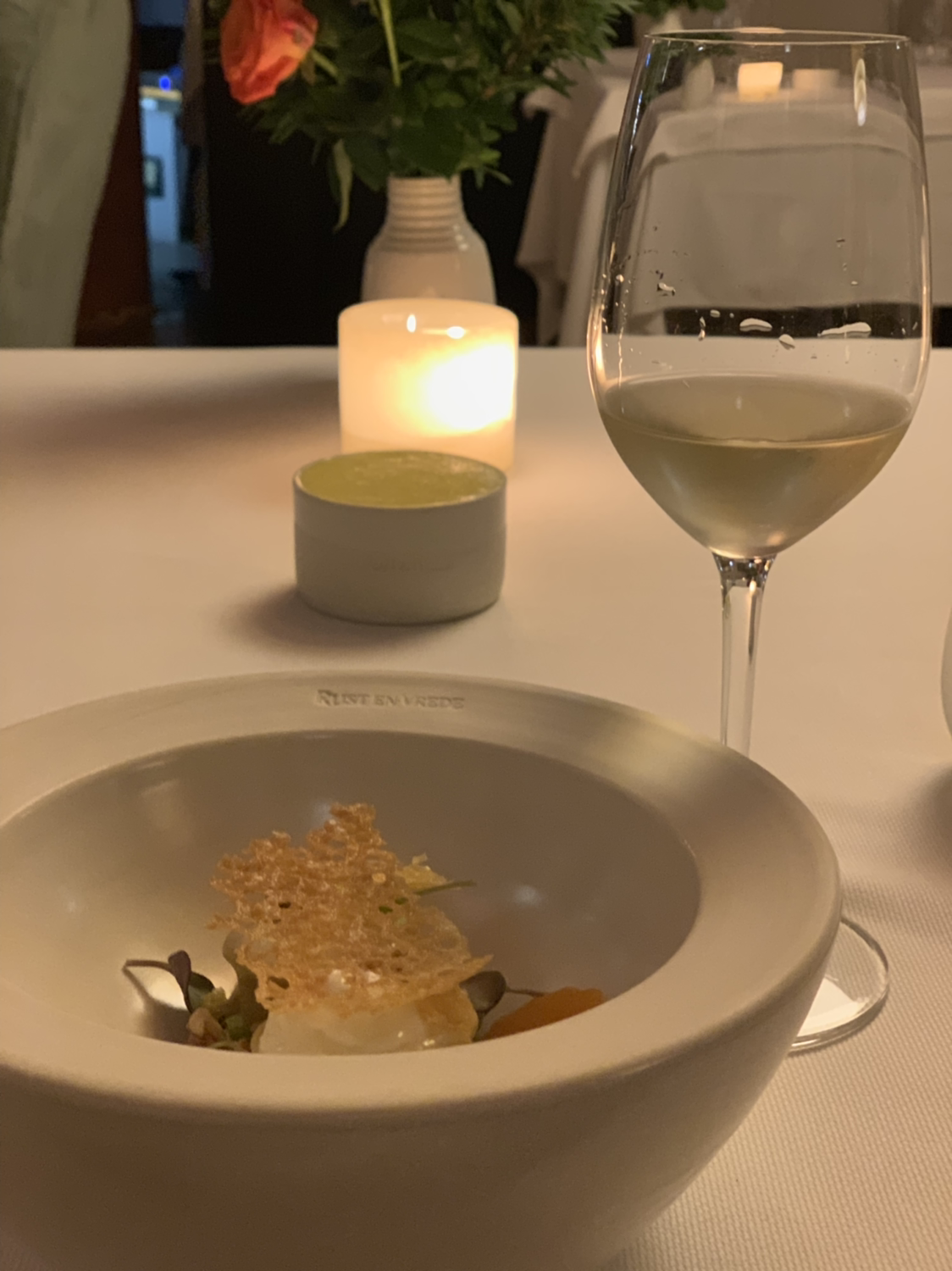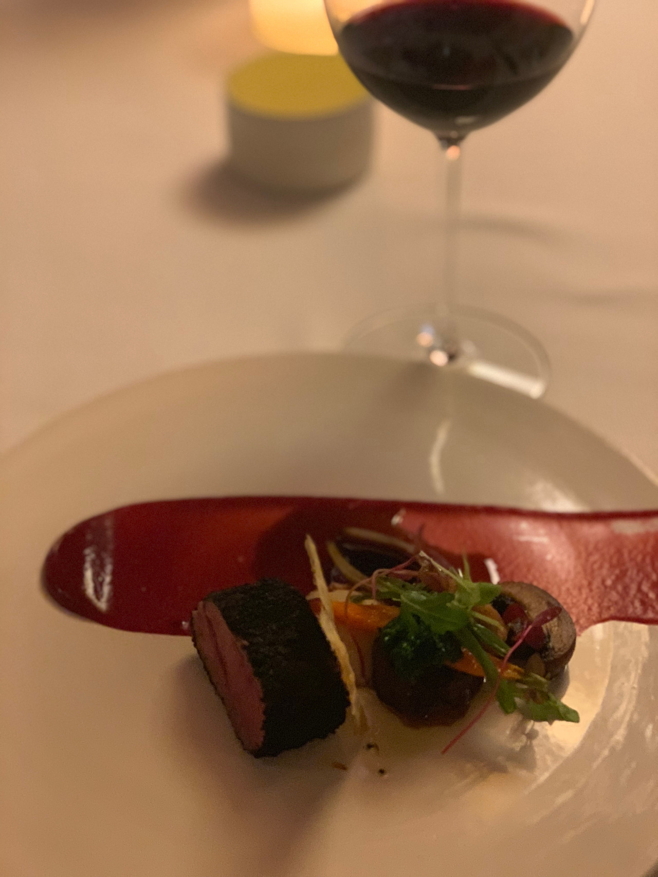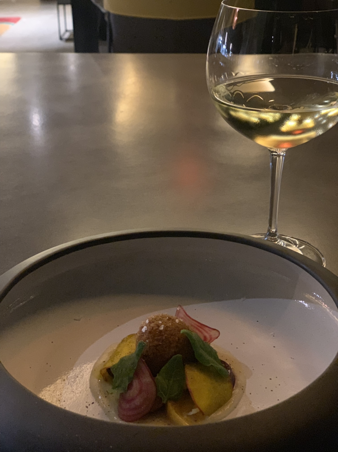 Caramelised cauliflower, cauliflower puree, Klein river Danbo cheese, Maison beetroot, sout spinasie - Viognier 2015 (Best!)