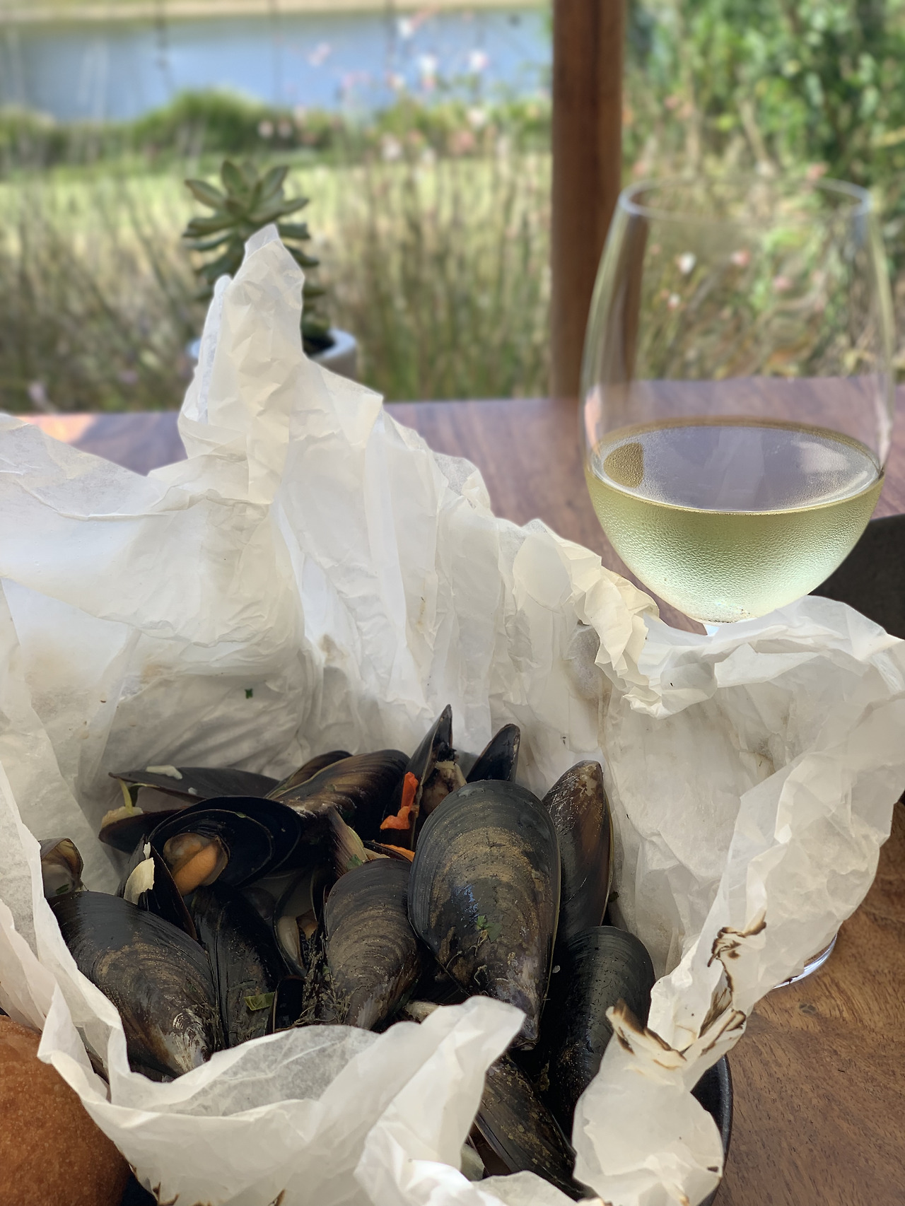 Steamed Saldanha bay mussels ‘papillote’ with lemon grass, coconut milk, chilli, lime, ginger, garlic, coriander -Jordan the Real McCoy riesling 2017