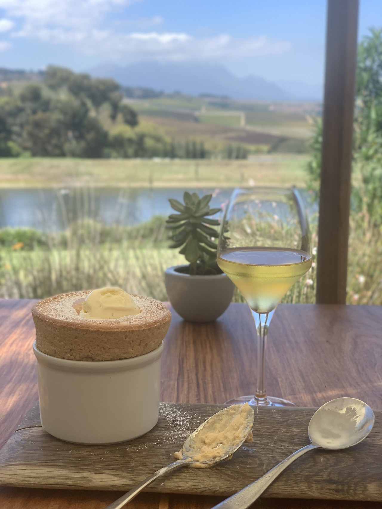 Rooibos soufflé, crème anglaise and lemongrass ice cream - Joostenberg Noble late harvest 2017(strong apricot flavour)