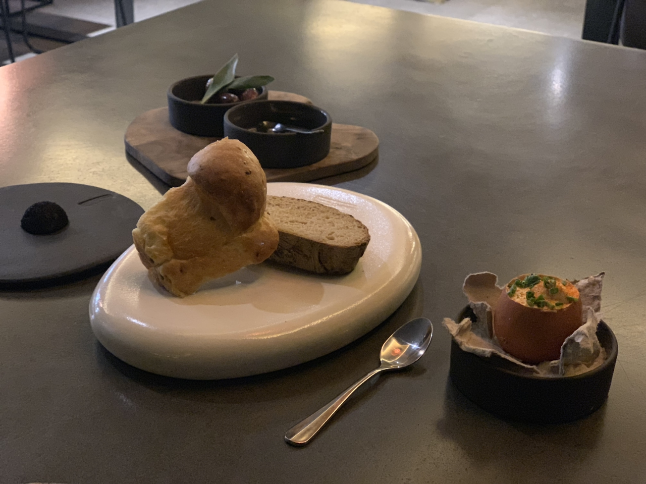 식전빵과 아뮤즈부쉬, 샴페인은 따로 주문함.