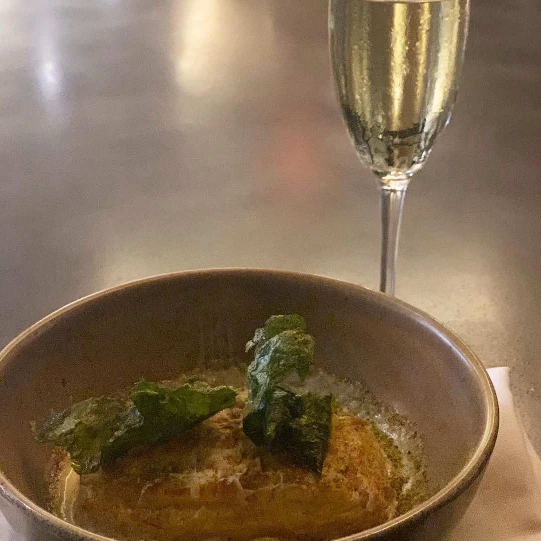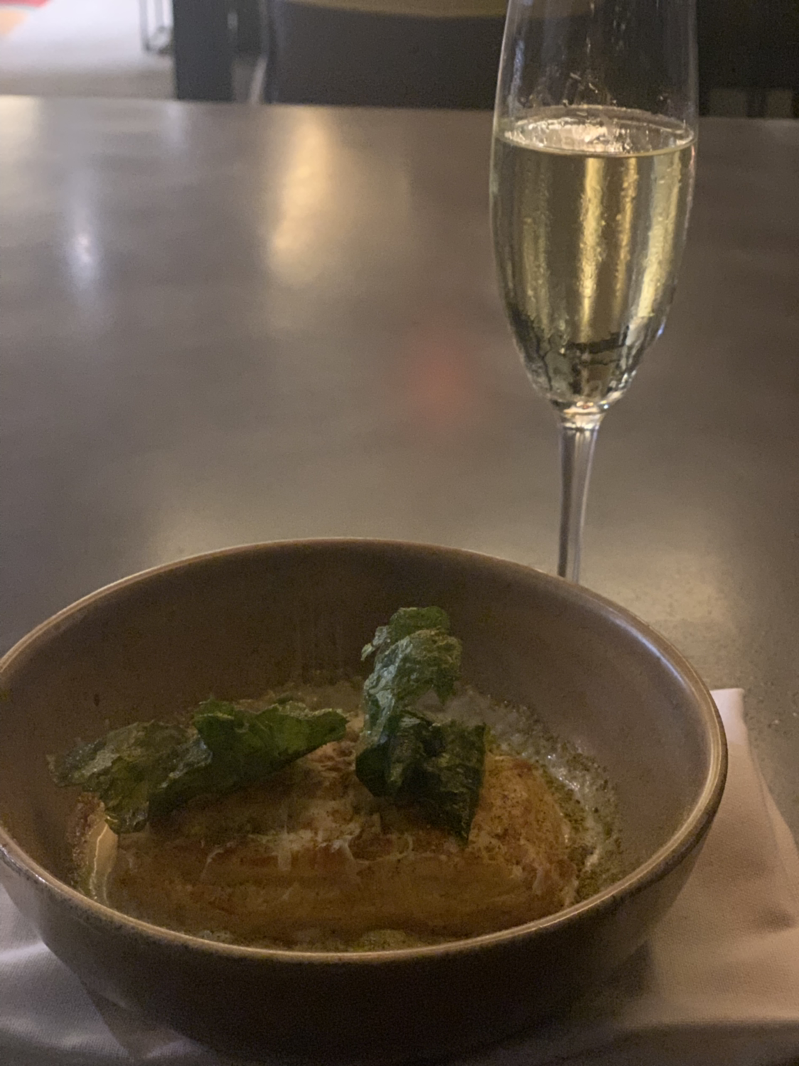 Twice baked Gruberg soufflé, Jamestown spinach, kale - HV brut (Best!)
