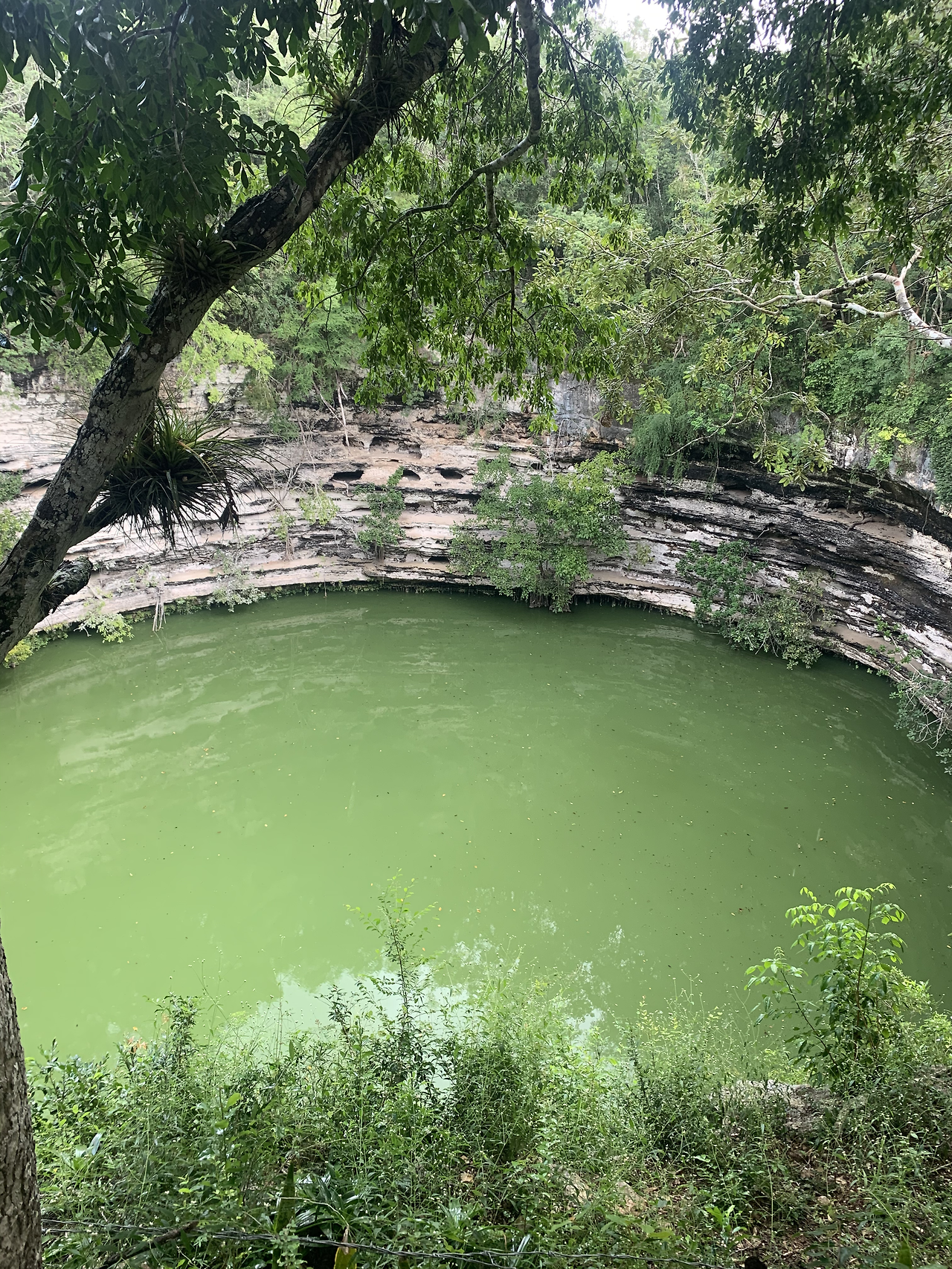 멕시코 여행 통틀어 여러 피라미드와 마야문명 유적지를 보았고 중간에는 약간 물리는 감도 있었지만 치첸이트자는 달랐다. 뭐 규모를 생각하면 태양의 피라미드에 미치는 것은 아니지만 건축된 방법에 들어있는 천체지식이라든지 과학성이 당시 기술로 생각되지 않을 정도로 정교하고 멋지다. 올라갈 수는 없게 되어있지만 마주보고 서서 박수를 치면 내부 신전에 반사되어 메아리가 돌아오는데 소리가 마치 새울음소리처럼 들린다. 모든 관광객과 가이드가 아래에서 박수를 치고 있었다..피라미드도 신기했지만 다른 건물들도 신기하고 웅장하고 또 이 지역 전체에 퍼져있는 Cenote (쎄노떼) 가 이곳에도 있었는데 신성하게 여겨져서 황금과 보석을 비롯해 어린아이까지 공물로 바쳤다고 한다. 근데 시체가 들어있으면 물 썩고 더러워지는거 아니냐고.. 천체관측에는 그렇게 놀라운 기술을 자랑하면서 이런 부분에선 고대 문명(+종교)의 한계가 느껴진다.