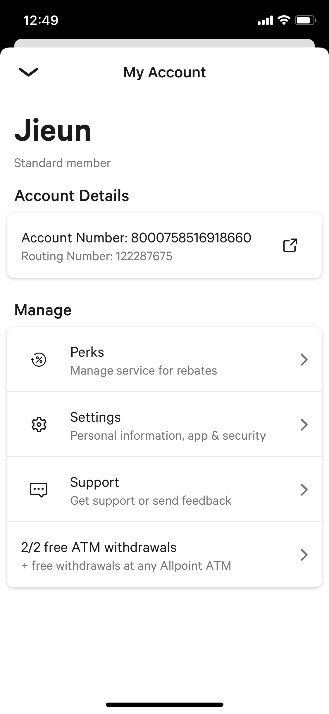 Action 안에 송금기능 뿐 아니라 My Account 안에 있던 카드 설정도 가져와 계좌와 관련된 활동들은 이 안에서 수행할 수 있게 만들었다. 하지만 성격이 다른 액션들과 모호한 레이블이 아직 어렵게 느껴진다.