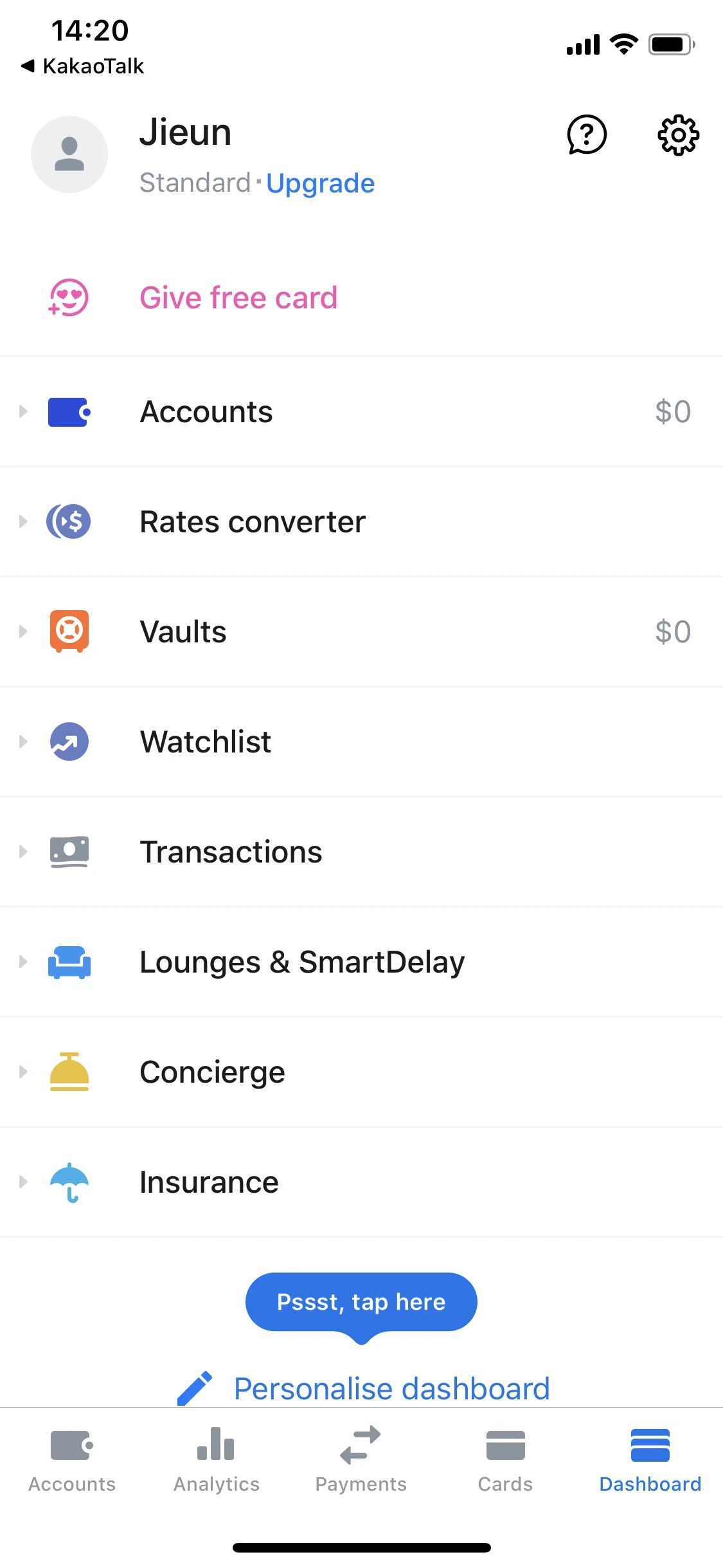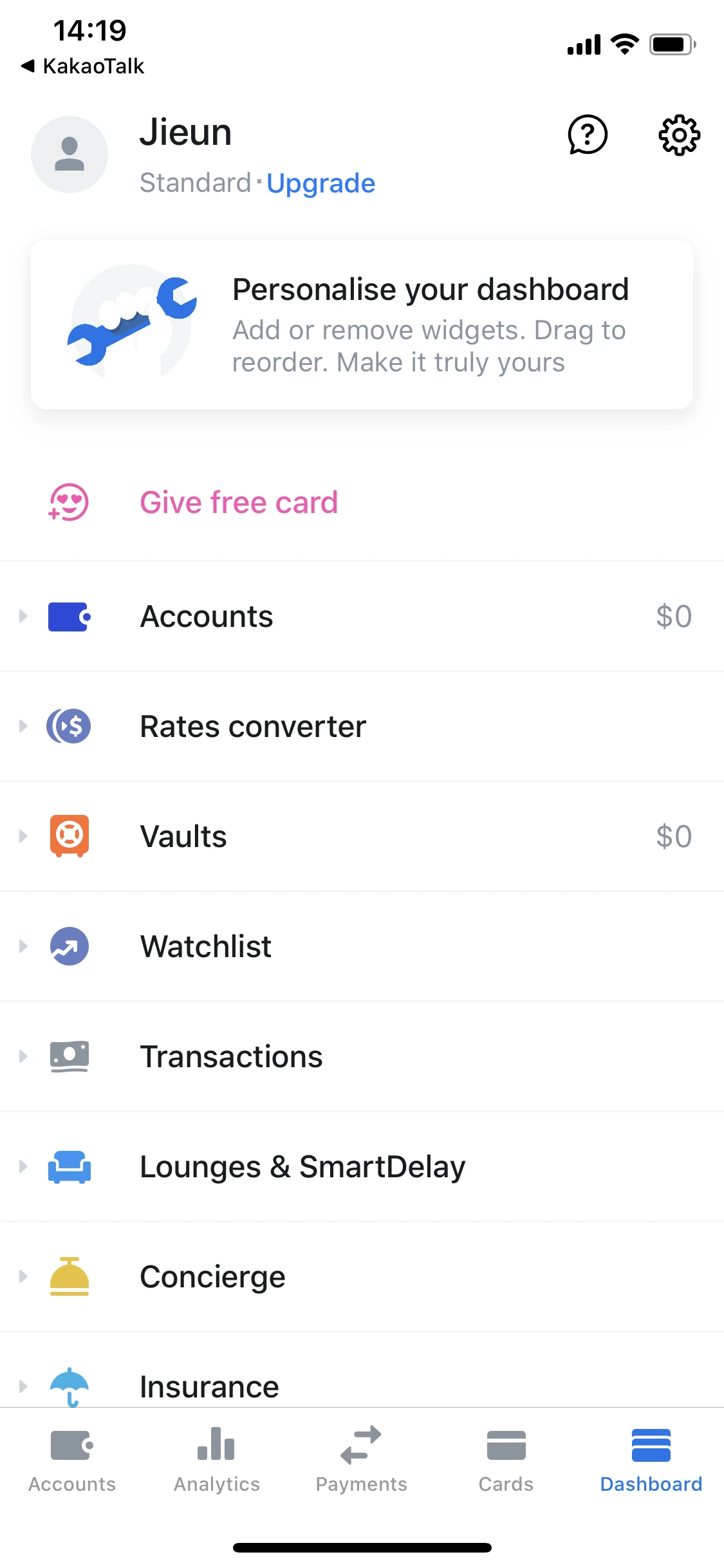 대쉬보드는 전체 메뉴를 한번에 볼 수 있는 기능인데 개인화를 하려면 프리미엄 업그레이드가 필요하다. 얼마나 좋은지도 모르고 9.99불을 내기엔 리스크가 너무 큰데 무료체험 같은 프로모션이 좀 필요하지 않을까?