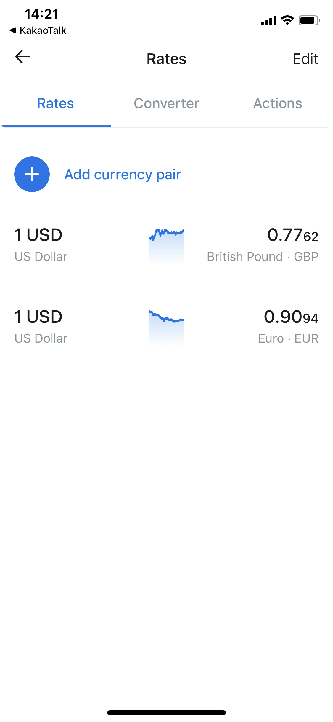 Revolut의 독특한 기능인 외환 사고팔기를 투자처럼 접근한 메뉴. 환율을 보다가 목표가격에 도달하면 알림을 받거나 자동거래를 할 수 있다.