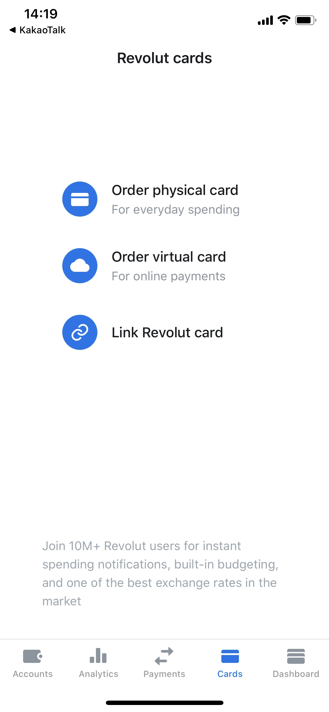 Revolut은 영국에서 2015년 시작한 핀테크 기업이다. 은행이라는 기본적인 기능보다는 환율의 고저에 따라 투자처럼 외환을 사고 팔 수 있도록 Watchlist를 두고 있다거나, 프리미엄 멤버십 서비스를 가입하면 ATM수수료 면제 등 혜택을 제공하는 점, 보험을 가입할 수 있는 점 등 다른 은행들보다는 오히려 한국의 토스나 카카오페이와 비슷한 기능들이 돋보인다.