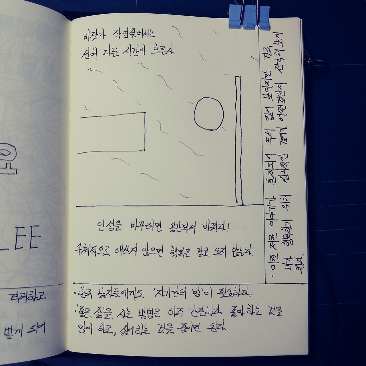사실 책상이 좋은 것에 대한 궁금증도 없었고, 그냥 문구류를 좋아하거나 잠시라도 혼자 있는 시간을 좋아하는 내향적 성격의 영향 탓으로 생각하고 있었는데, 책상이 내게 어떤 의미인지 알게 되는 책을 읽게 되었다. 김정운 작가의 <바닷가 작업실에서는 전혀 다른 시간이 흐른다>라는 책이 책상이 내 삶에서 어떤 공간을 만들어 주는지 알게 해 주었다.