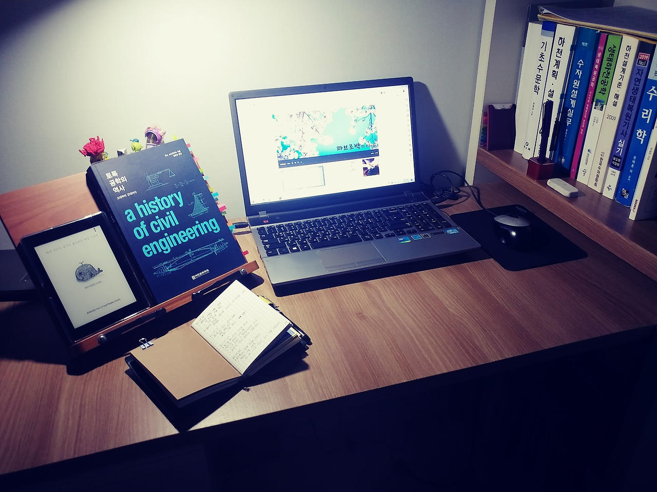 사실 그런 넓은 책상이 욕심났지만, 어차피 사봐야 집에 들이지도 못한다는 현실의 벽이 나의 지름을 막고 있었다. 그리고 결국 작은 책상을 구입하게 되었다. 그때 아내를 설득하는 과정에서 내가 꺼내 든 최후의 카드는 ‘기술사 공부’였다. ‘앞으로 공부를 계속해야 하는데, 관련 책도 많고, 상을 펴놓고 할 수는 없다. 그러니 책상은 작아도 하나는 있어야 한다.’라는 나름 설득력 넘치는 논리를 전개했다. 결국, 아내도 책상을 들이기로 마음을 돌렸다.