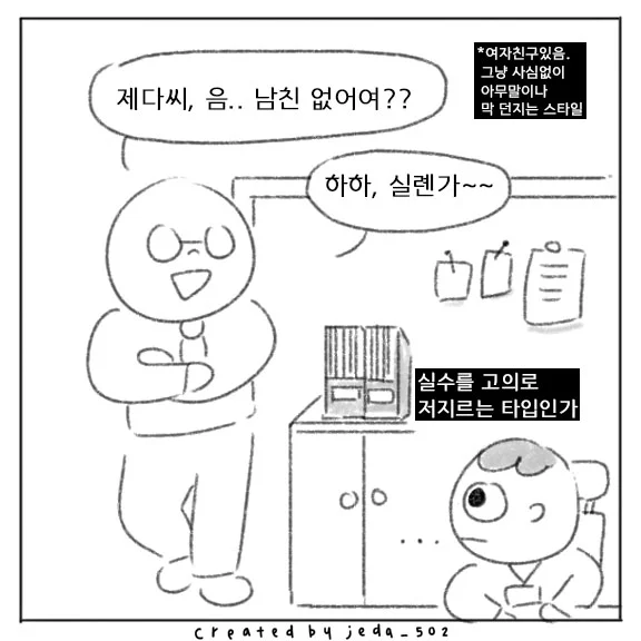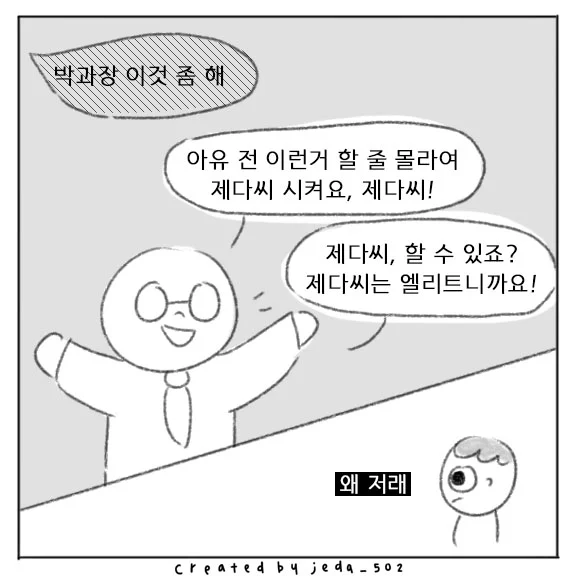 2030세대를 대표하는 직장인. 회사를 다니며 겪는 이야기. 보통의 제다가 사는 이야기를 그립니다. 누구나 겪을 수 있는, 누구나 고민할 수 있는 회사생활!