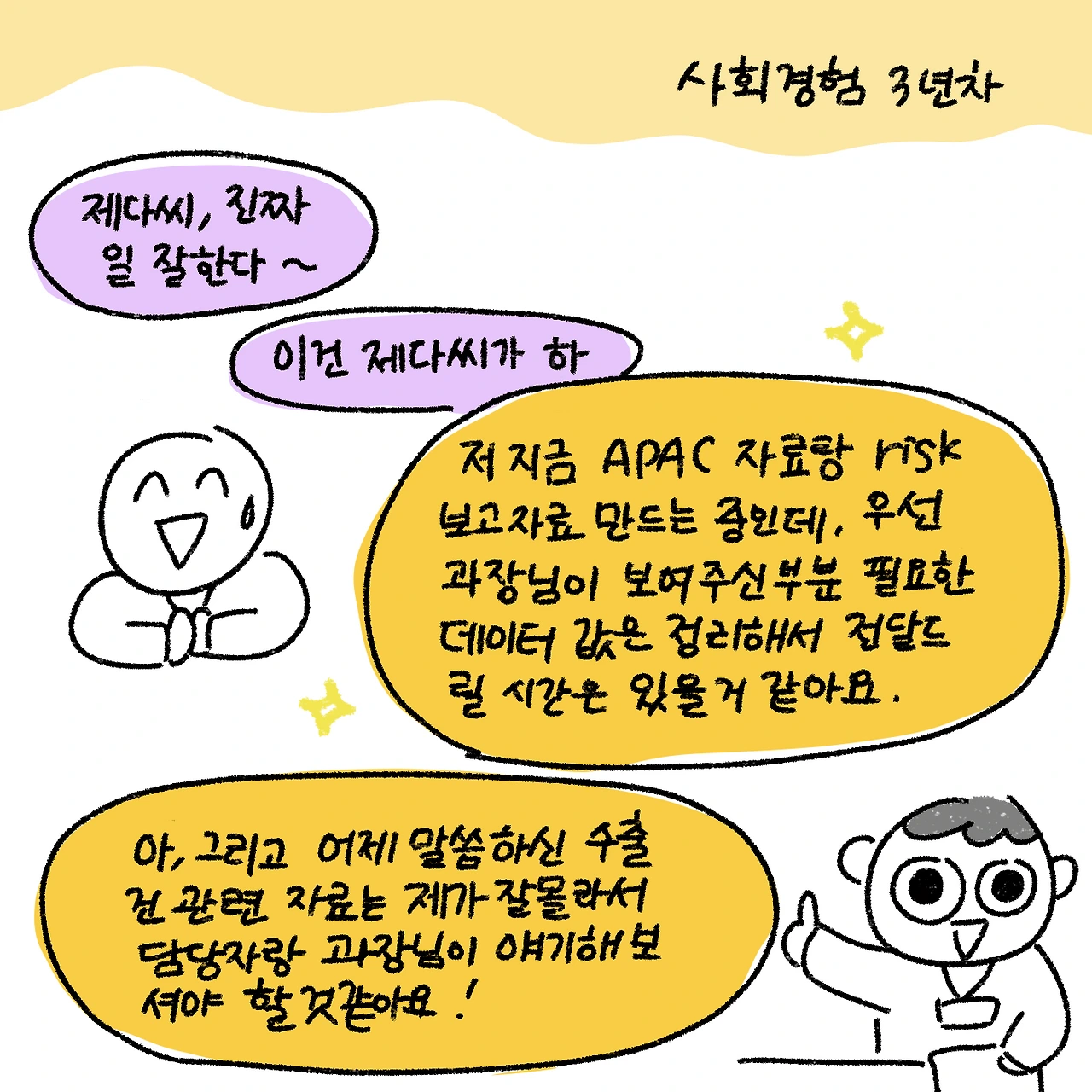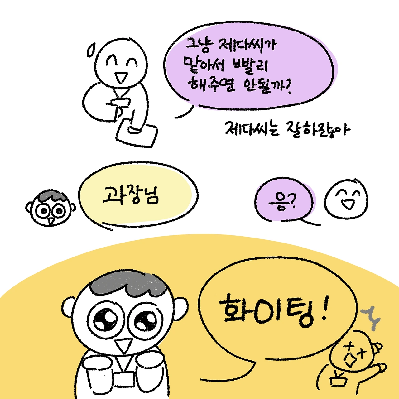 2030세대를 대표하는 직장인. 회사를 다니며 겪는 이야기. 보통의 제다가 사는 이야기를 그립니다. 누구나 겪을 수 있는, 누구나 고민할 수 있는 회사생활!