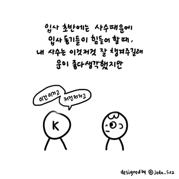 2030세대를 대표하는 직장인. 회사를 다니며 겪는 이야기. 보통의 제다가 사는 이야기를 그립니다. 누구나 겪을 수 있는, 누구나 고민할 수 있는 회사생활!
