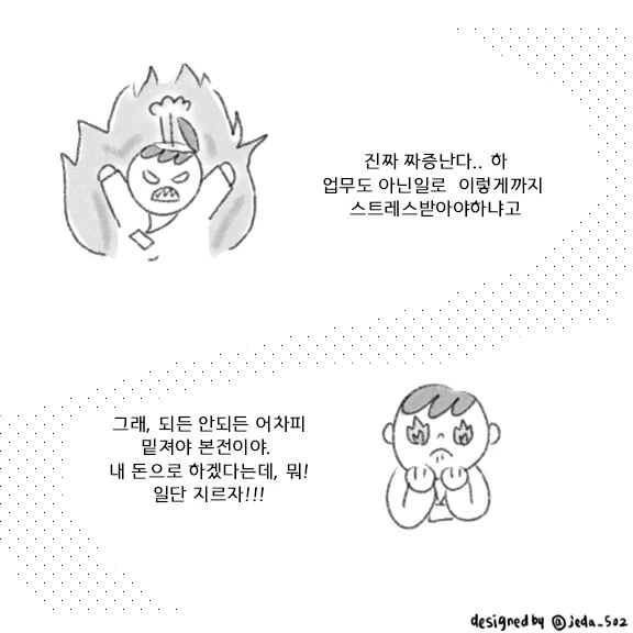 2030세대를 대표하는 직장인. 회사를 다니며 겪는 이야기. 보통의 제다가 사는 이야기를 그립니다. 누구나 겪을 수 있는, 누구나 고민할 수 있는 회사생활!