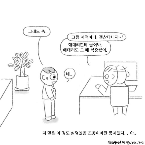 2030세대를 대표하는 직장인. 회사를 다니며 겪는 이야기. 보통의 제다가 사는 이야기를 그립니다. 누구나 겪을 수 있는, 누구나 고민할 수 있는 회사생활!