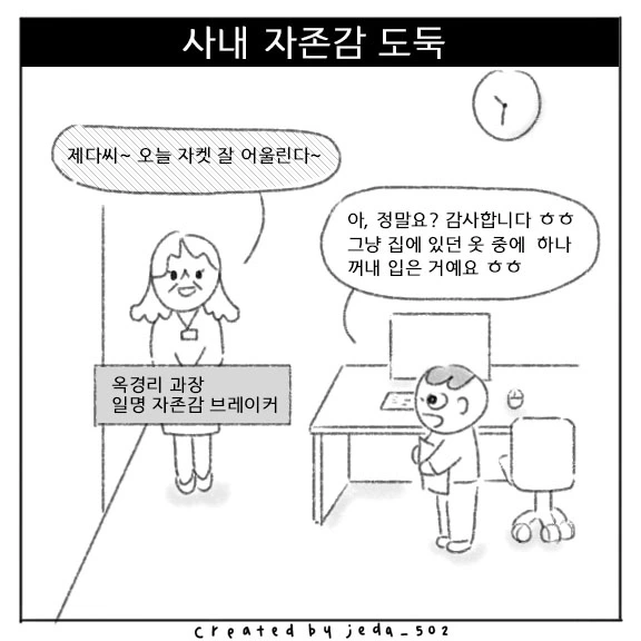 2030세대를 대표하는 직장인. 회사를 다니며 겪는 이야기. 보통의 제다가 사는 이야기를 그립니다. 누구나 겪을 수 있는, 누구나 고민할 수 있는 회사생활!
