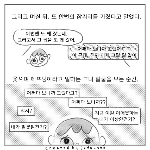 "나 또 잤다 ㅋㅋ, 아 진짜 아무 사이 아니거든. 그건 그렇고, 오빠는 왜 나랑 또 자자고 했을까?"..