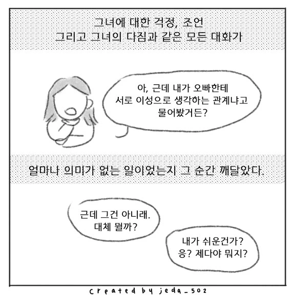 "관심 없어, 근데 잤다?, 우린 무슨 사일까?, 아 물론 아무 감정은 없어".