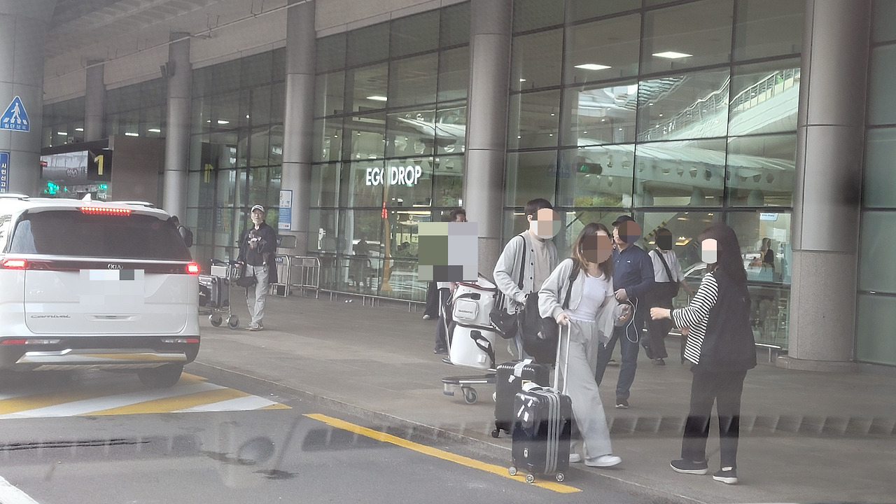 첫날 오후 6시 30분경, 환한 웃음으로 엄마와 재회하는 우리 사랑하는 아들(대딩 4)과 딸(대딩1). “드디어 우리 가족 완전체 제주여행 시작이다”