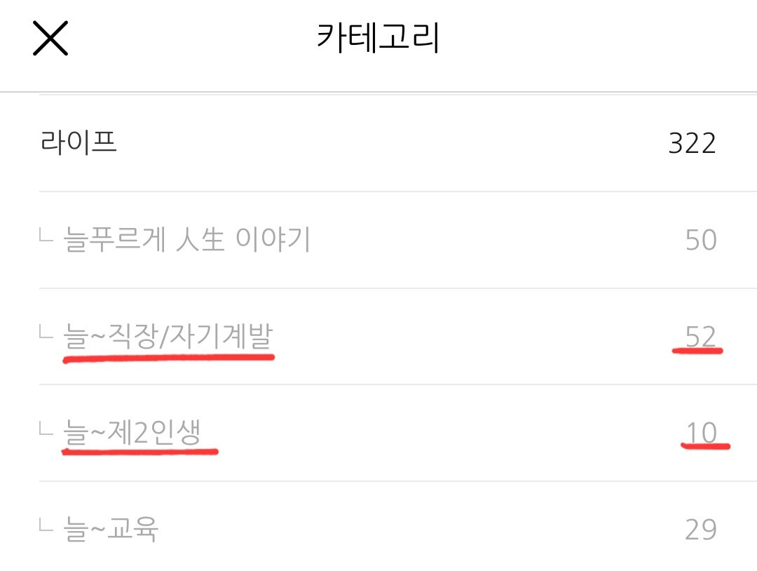 와, 저도 이번에 처음 알았는데, 벌써 이렇게 많은 글들을 올렸네요. 늘~직장/자기 계발에 52편, 늘~제2인생에 10편이 나요.