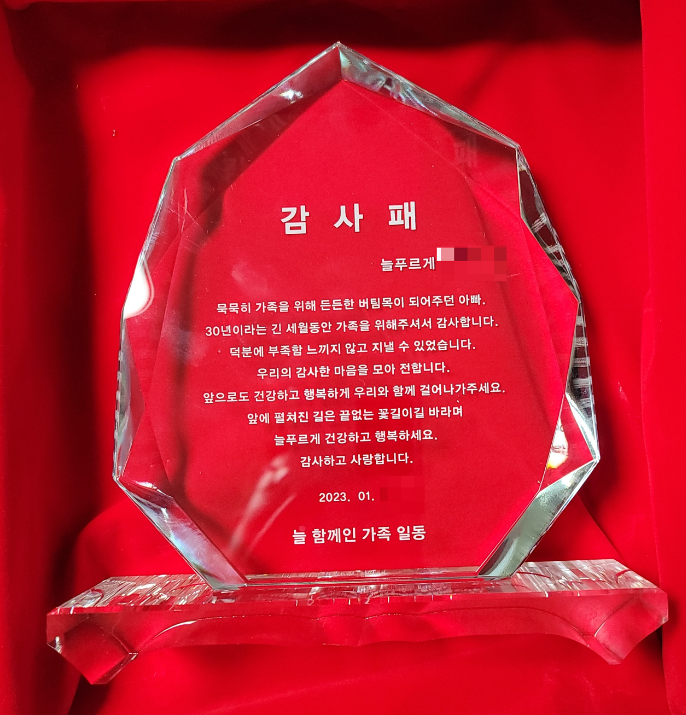23년 1월 초 장기근속 30주년 날, 가족들의 축하 이벤트
