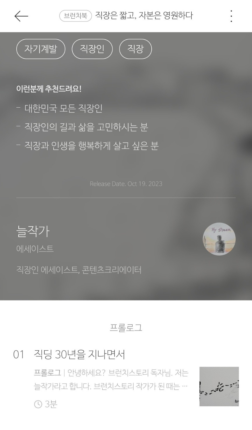 보이시지요? 첫 번째에 brunch book 직장은 짧고, 자본은 영원하다. 여기를 클릭 또 해주세요.