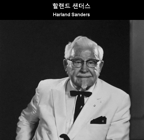 이 분은 65세까지 인생은 망~이었다. 이때 이 분은 월 105달러 사회 보장금과 낡은 트럭 한 대뿐이었다. 그런데 60대 후반부터 이 분 인생이 피기 시작하여 90세에 저 세상 가셨다. 지금은 인생 100세 시대이니 70대에도 얼마든지 내가 좋아하는 일을 찾으면 인생 역전 가능하다고 믿는다.