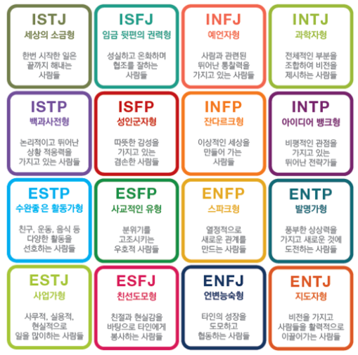 이 방법도 상당히 좋다. 흔한 방법 중 MBTI 검사가 있다.