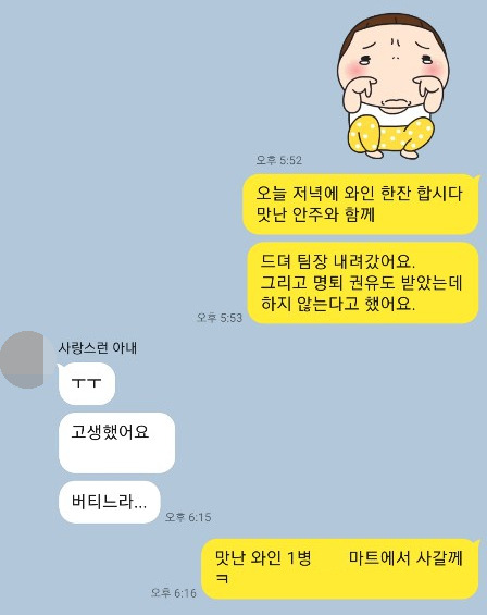 그날 아내에게 보낸 카톡(3년 전부터 난 술 완전히 끊었다.)
