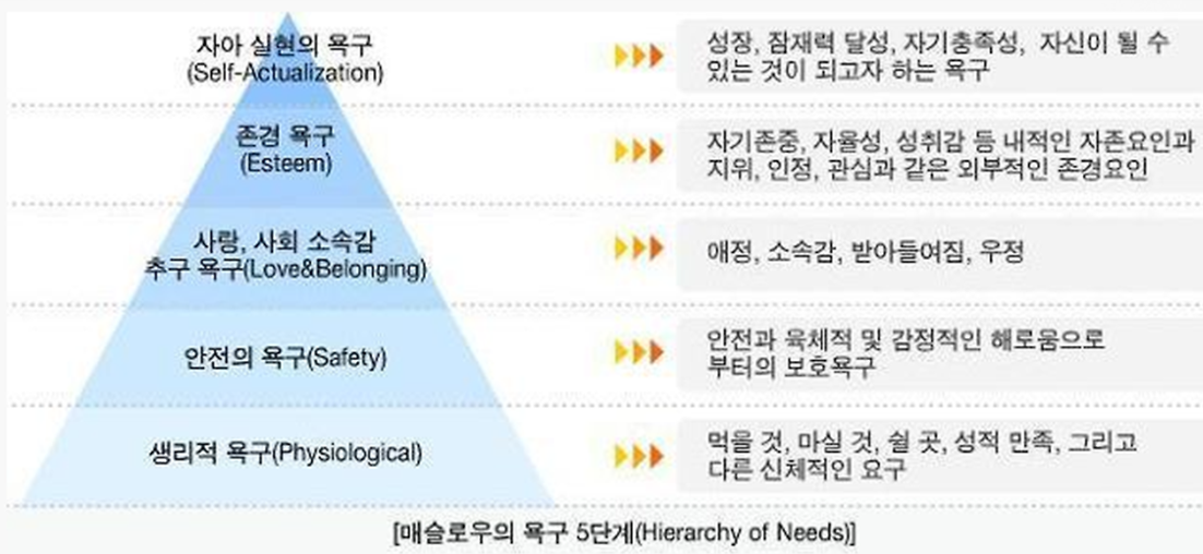 10화에서 나는 이 회사에서 더 이상 에너지를 쏟아서 다니지 않는다고 이야기했다. 매슬로우 5단계 욕구분석에 의하면 이렇게 사는 삶은 겨우 두 번째 단계인 ‘안정의 욕구’ 혹은 잘해야 3단계인 ‘소속과 애정의 욕구”정도 수준일 것이다.