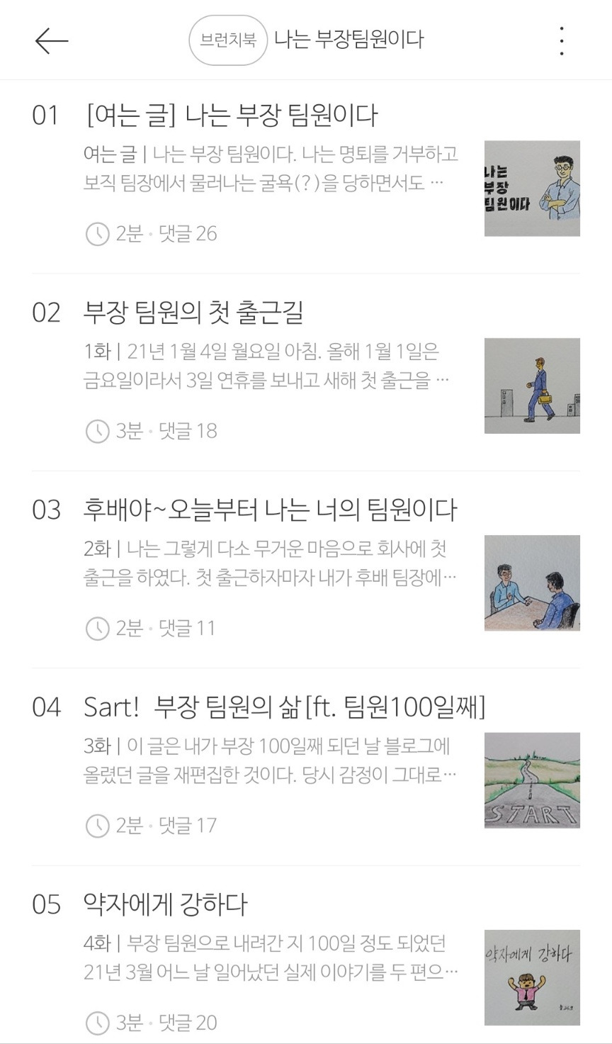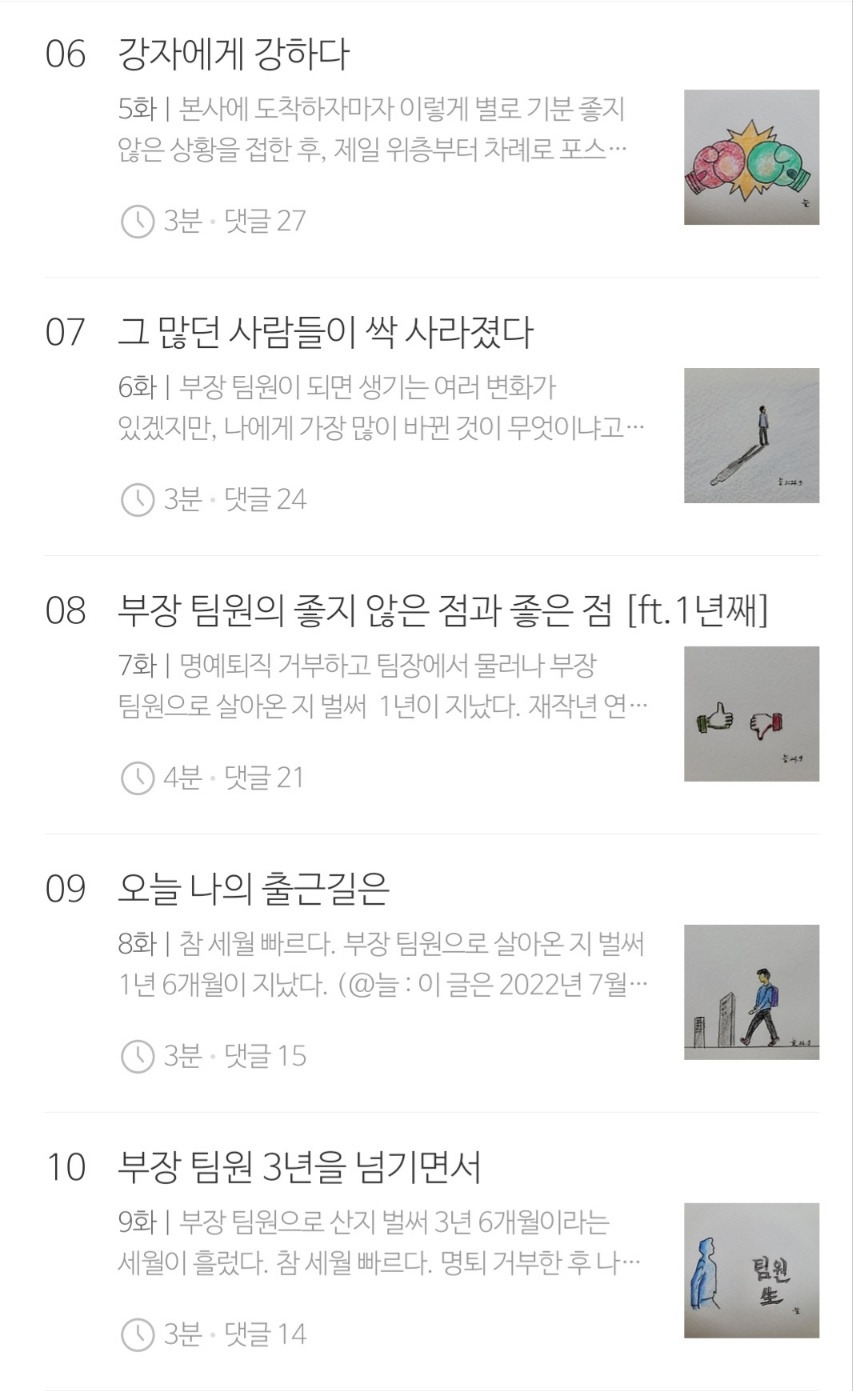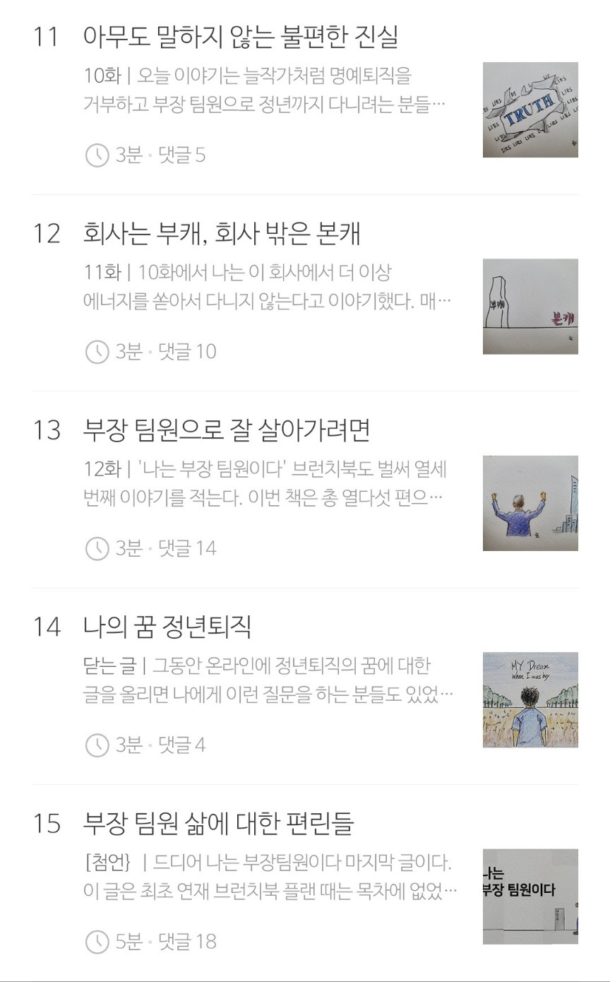 나는 부장팀원이다 브런치북을 다시 한번 간단히 표지와 목차만 올려드립니다.