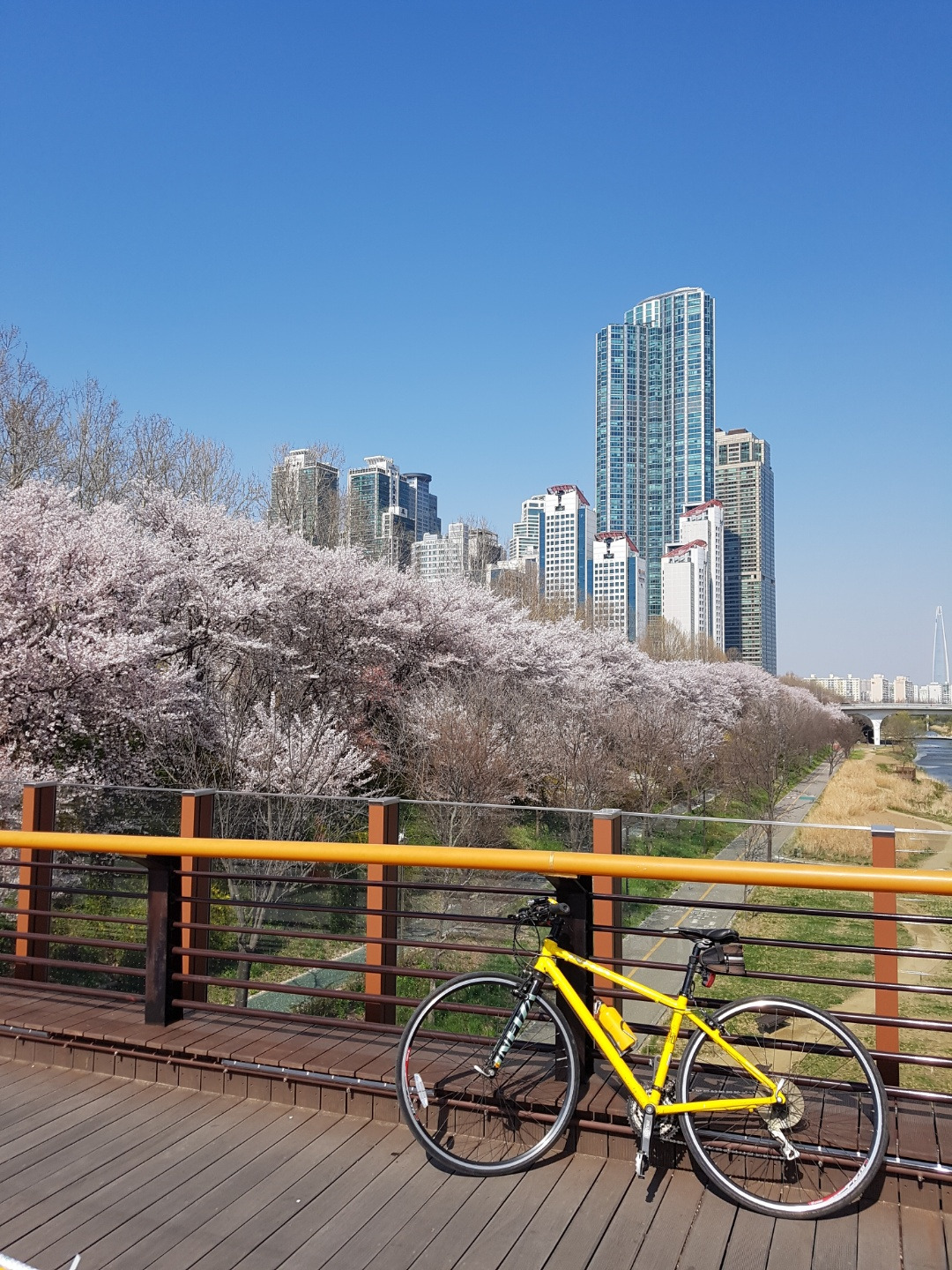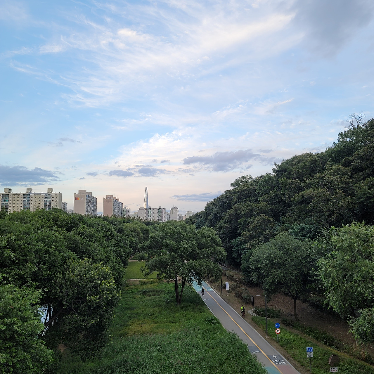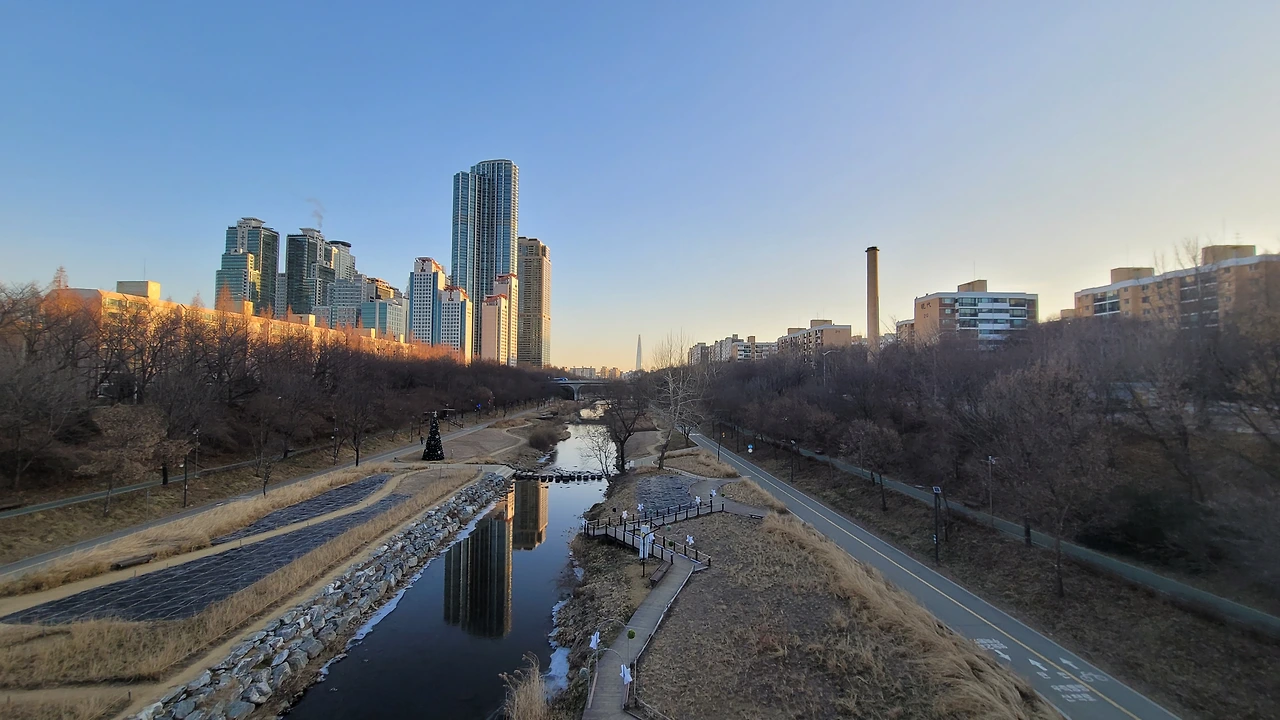 22년 1월 1일 08시 20분에 찍은 사진. 왼쪽 타팰과 개포우성 4차 아파트엔 이미 해가 비치는데, 이 다리에서는 아직 해가 보이지 않음. 15분 정도 더 지나서 오른쪽 현대2차 아파트 위로 해가 뜨더라능 ㅋㅋㅋ
