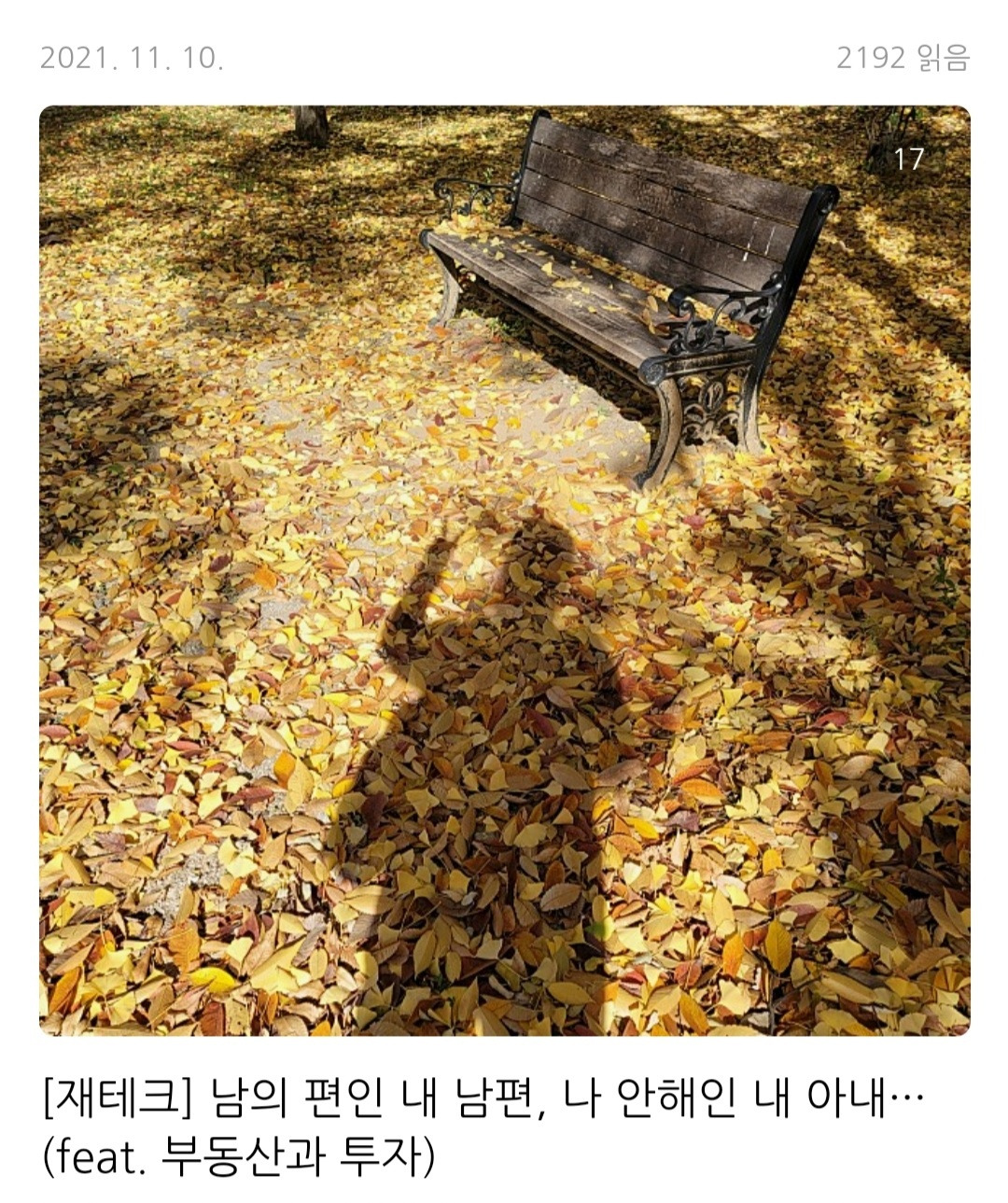 지난 11월 10일(수) 블로그에 아래와 같은 글을 올렸었다.