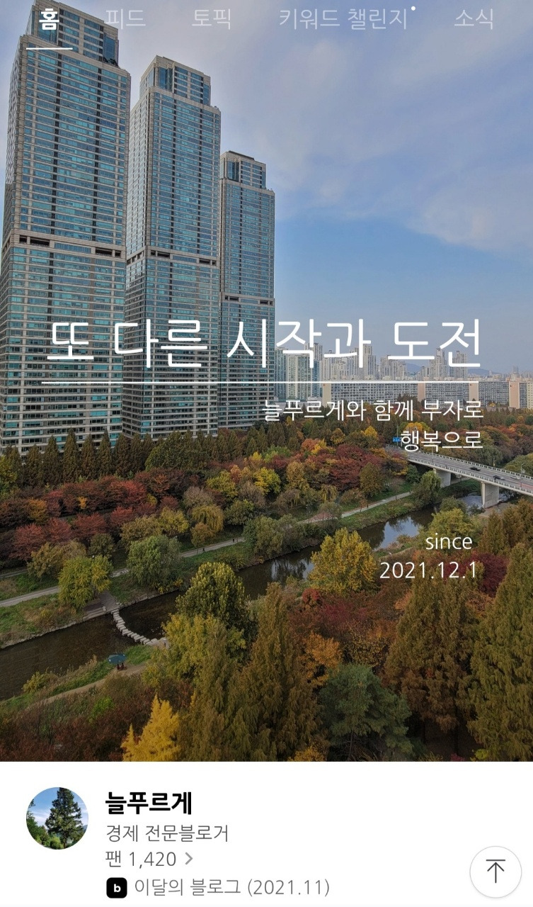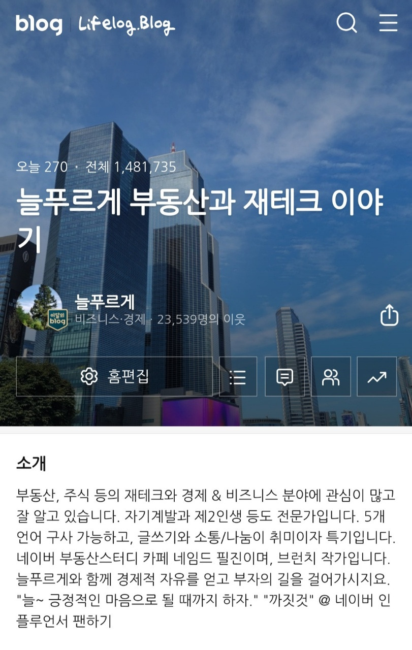 늘작가는 늘푸르게라는 필명으로 네이버 파워 블로그(이웃 23,539명), 네이버 인플루언서, 21년 11월 이달의 블로그(경제/비즈니스 분야) 입니다.