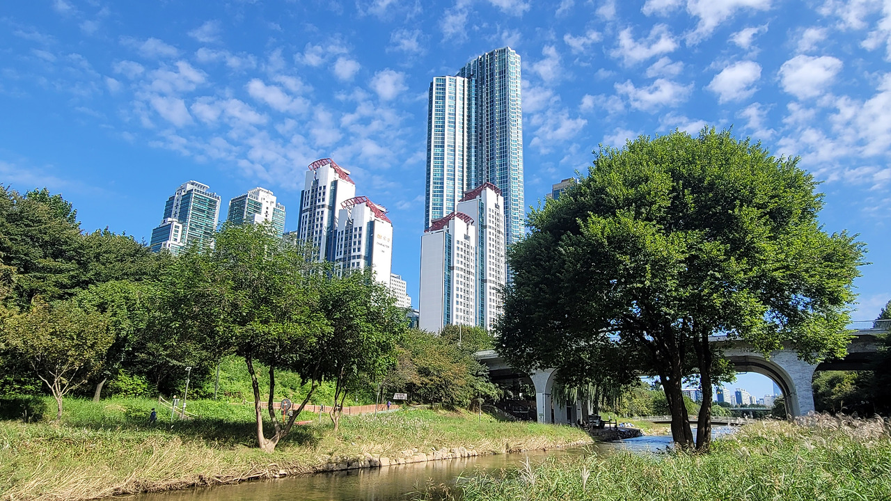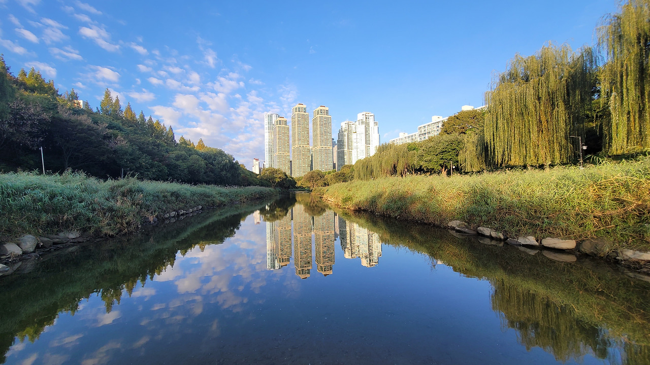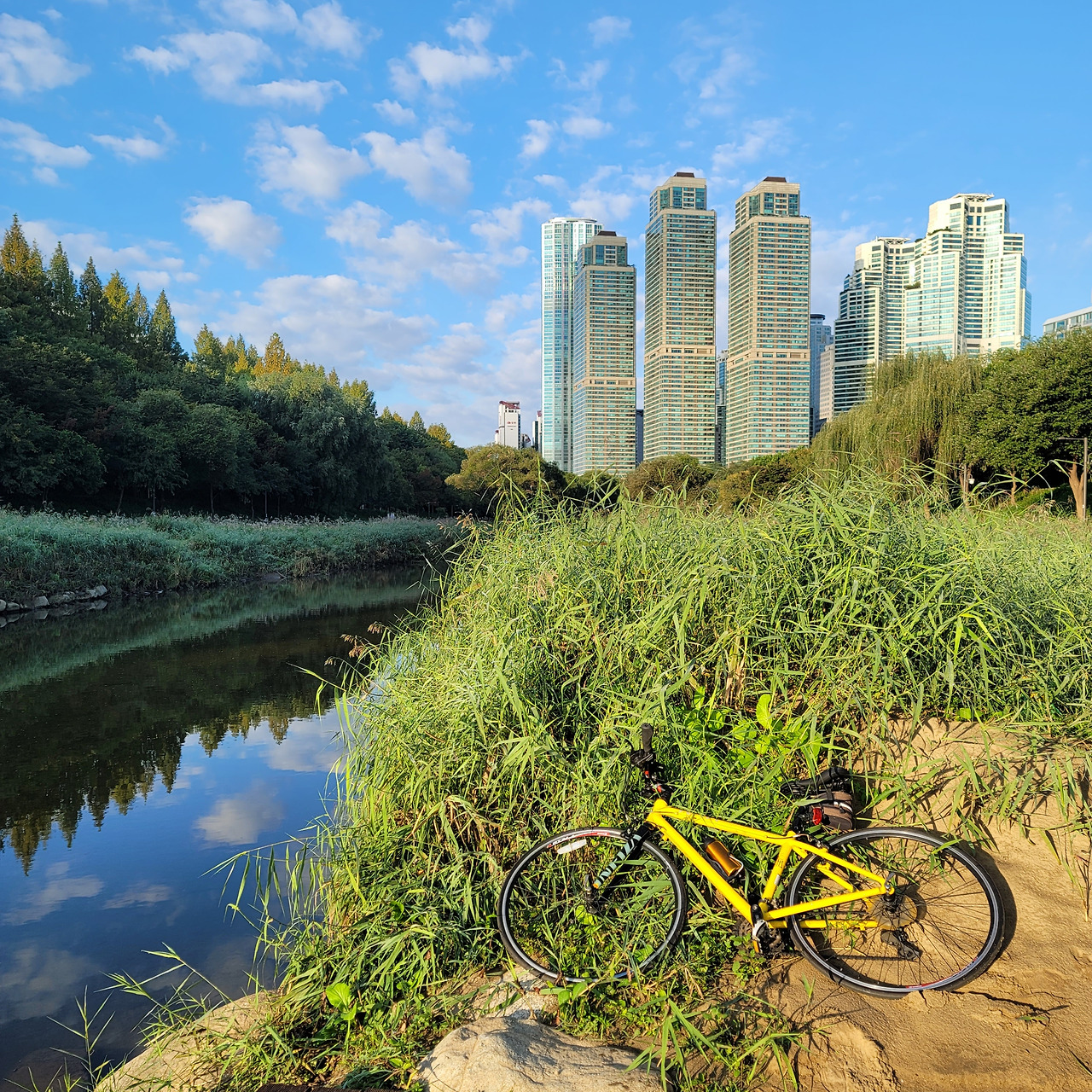 늘작가가 가장 좋아하는 양재천 포토존에서 찍었습니다. 이 날 찍은 베스트 사진은 아니지만 브런치 대문이 긴 가로형에 적합하여 이 사진을 골랐어요. 이곳은 집에서 도보로 몇 분이면 오는 곳인데, 이날은 자전거를 가지고 나왔어요.