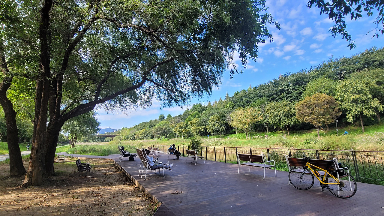 이번 양재천 폭우에도 멀쩡하게(?) 살아남아 있는 몇 안 되는 휴식 공간입니다.