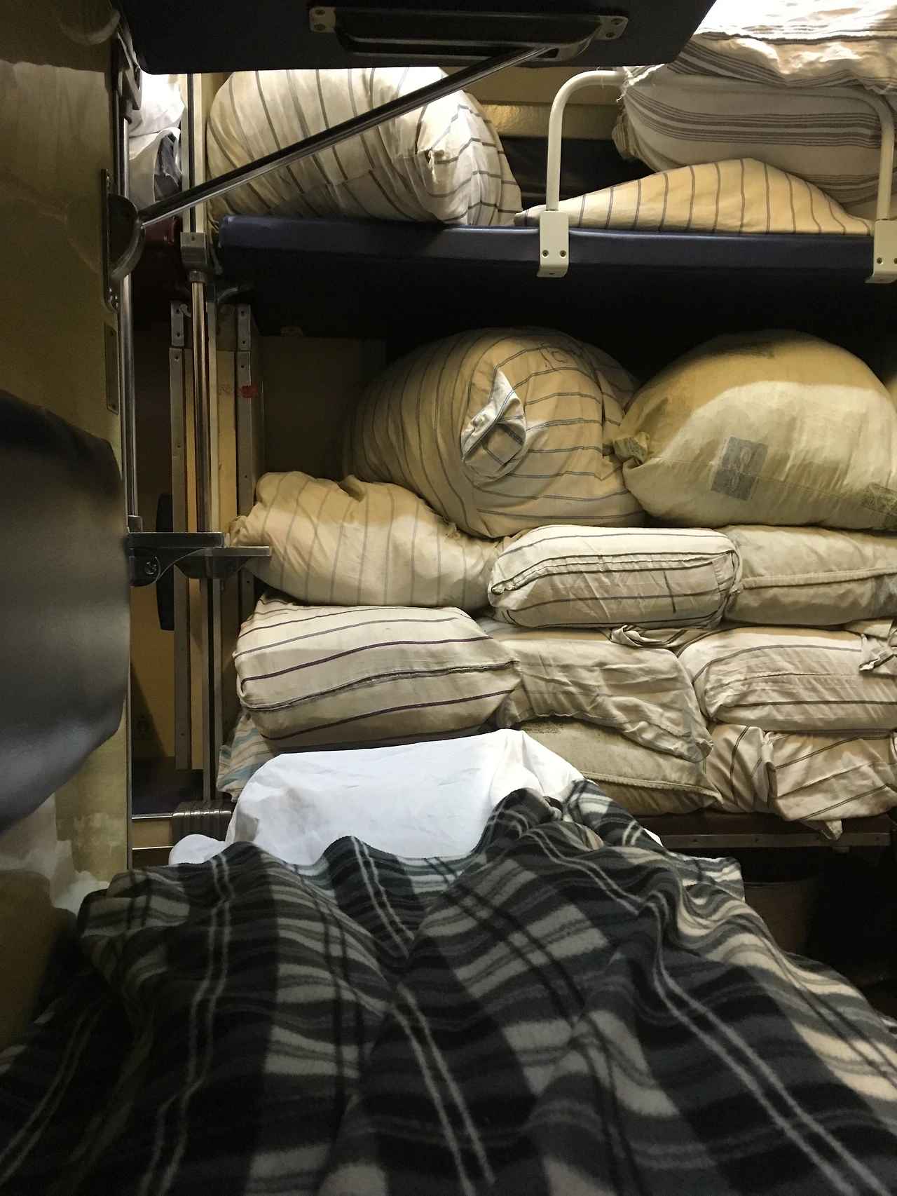 한 가지 더 덧붙이자면, 내키가 160cm인데도 문으로 드나드는 사람들이 자꾸만 발에 차인다. 키가 큰 러시아 사람들은 이 작은 침대에 어찌 눕는 건지 오지랖에 걱정이 된다. 실제로 침대 밖으로 발들이 많이 나와있다.