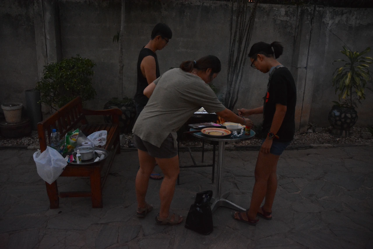 우리는 숙소 앞 좁은 마당에서 고기를 구워 먹고 있었다. 1인분에 3000원이 되지 않는 삼겹살을 사 와서 배부르게 먹고 축제가 있는 멀리 시내에서 터지는 폭죽을 보며, 선선한 날씨에 술과 수다가 더해져 완벽한 시간이었다. 방을 비운 건, 대략 한 시간 남짓이었던 샘이다.